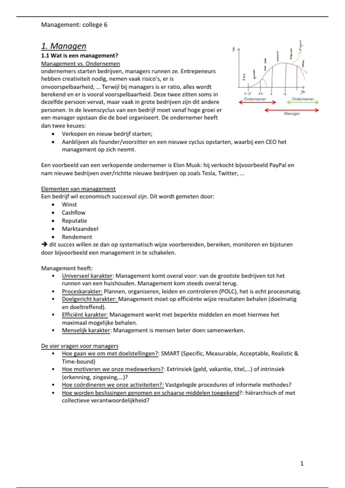 1. Managen In de levenscyclus van een De onderneme