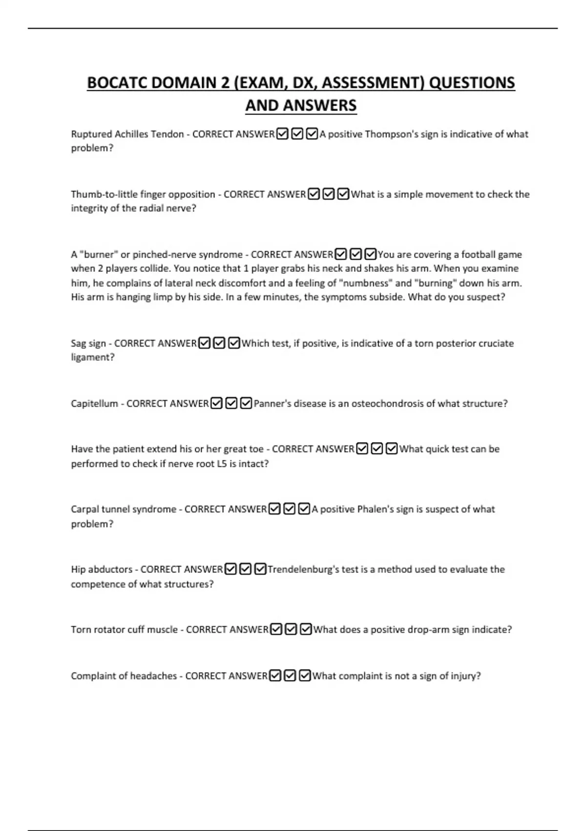 BOCATC DOMAIN 2 (EXAM, DX, ASSESSMENT) QUESTIONS AND ANSWERS