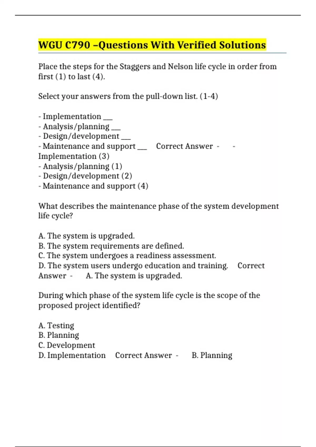 - Maintenance and support ___ Correct Answer - -