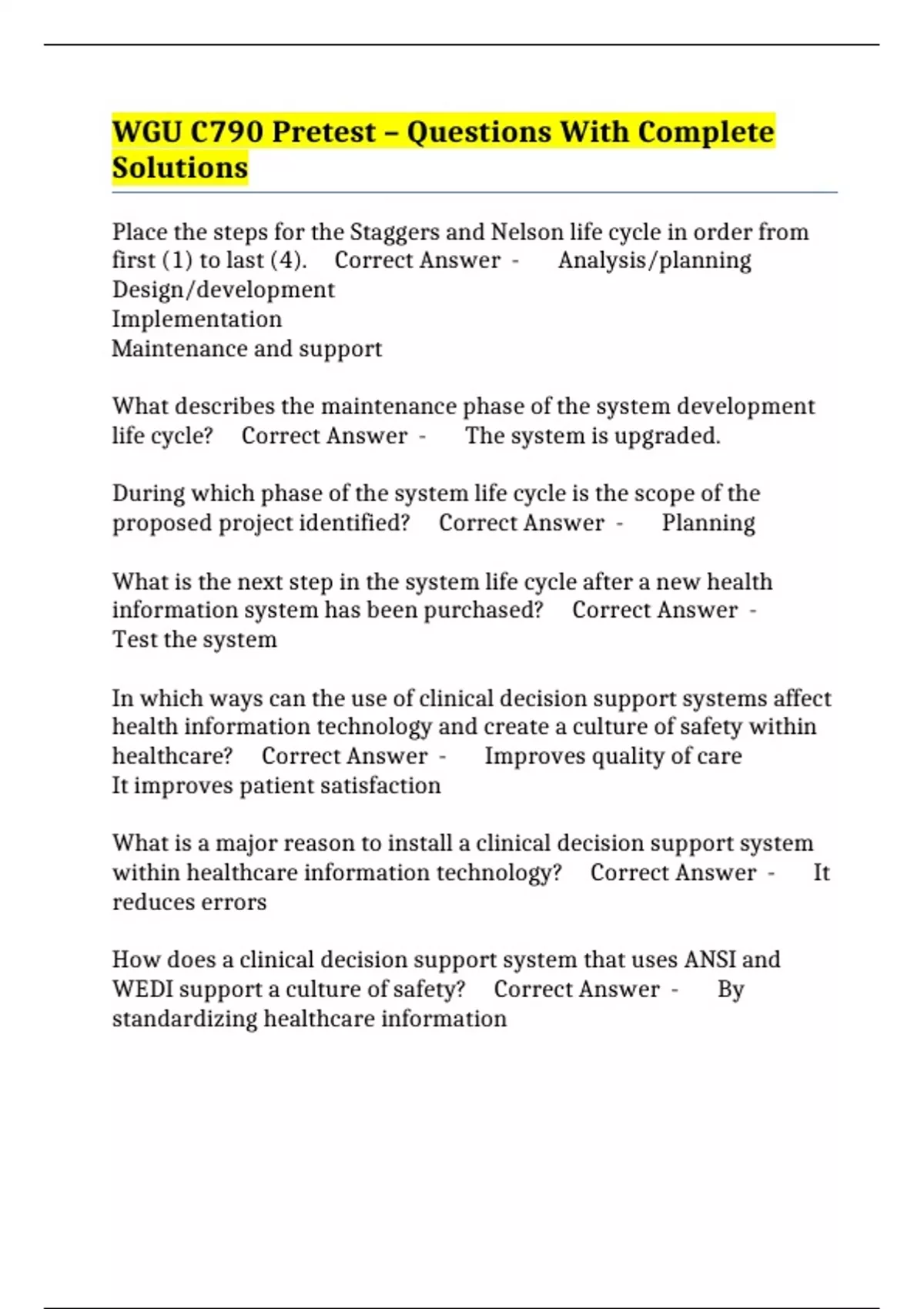 WGU C790 Pretest – Questions With Complete