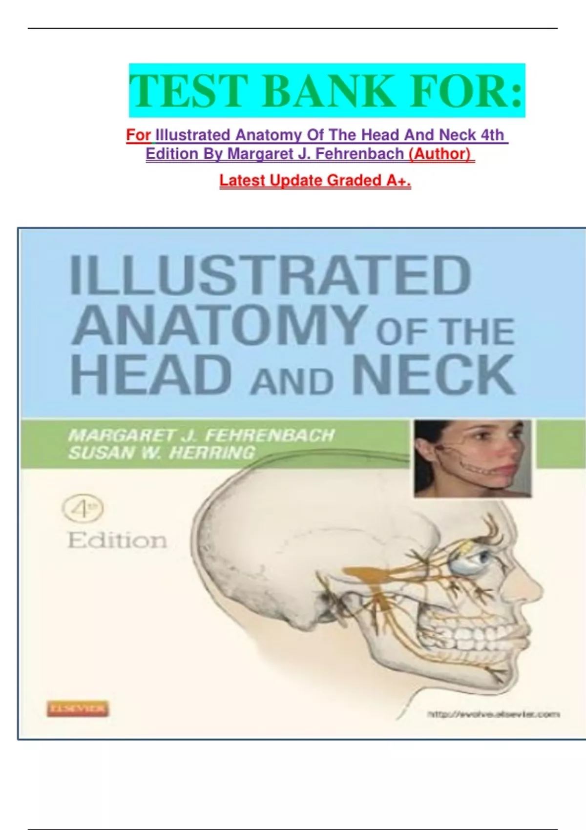 TEST BANK FOR: For Illustrated Anatomy Of The Head And Neck 4th Edition By Margaret J. Fehrenbach (Author) Latest Update Graded A+.