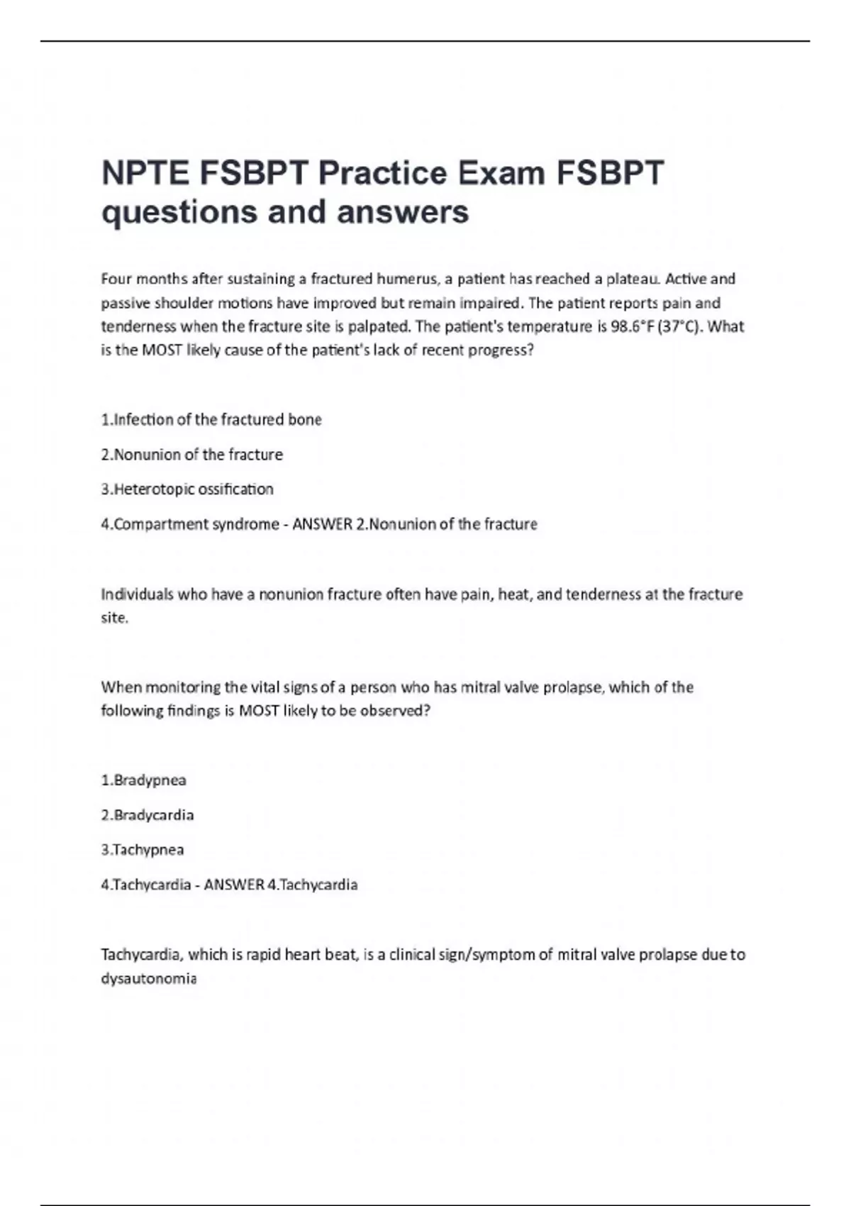 NPTE FSBPT Practice Exam FSBPT questions and answers.