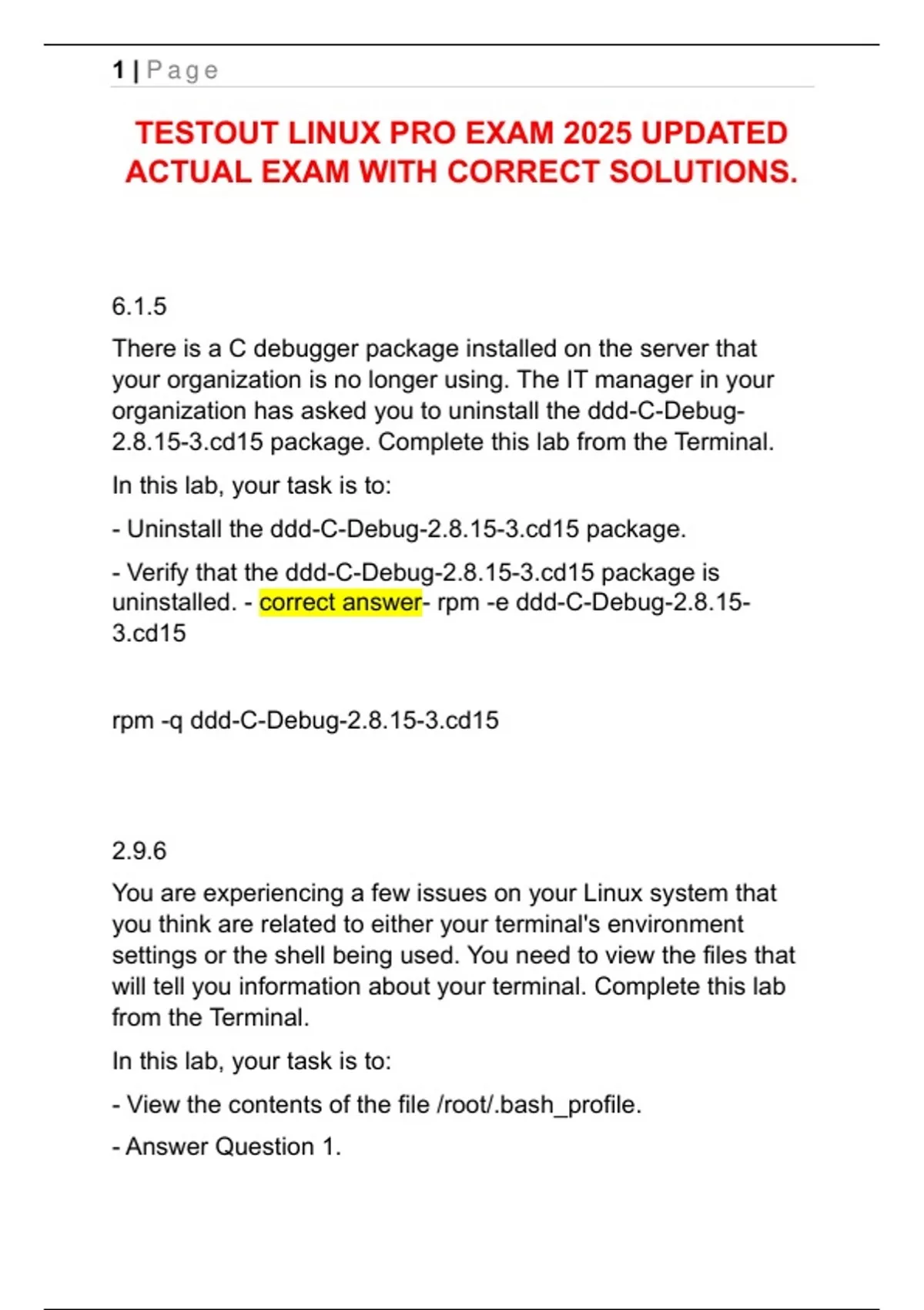 TESTOUT LINUX PRO EXAM 2025 UPDATED ACTUAL EXAM WITH CORRECT SOLUTIONS.