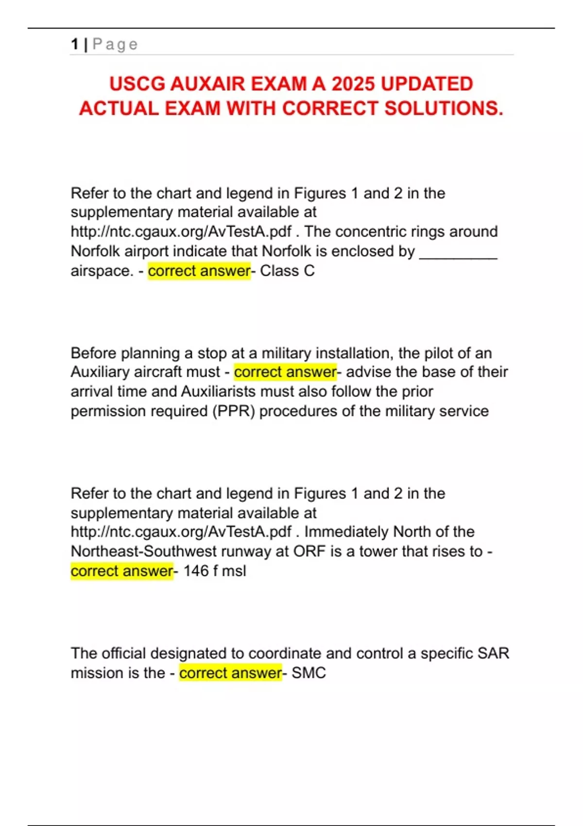 USCG AUXAIR EXAM A 2025 UPDATED ACTUAL EXAM WITH CORRECT SOLUTIONS.