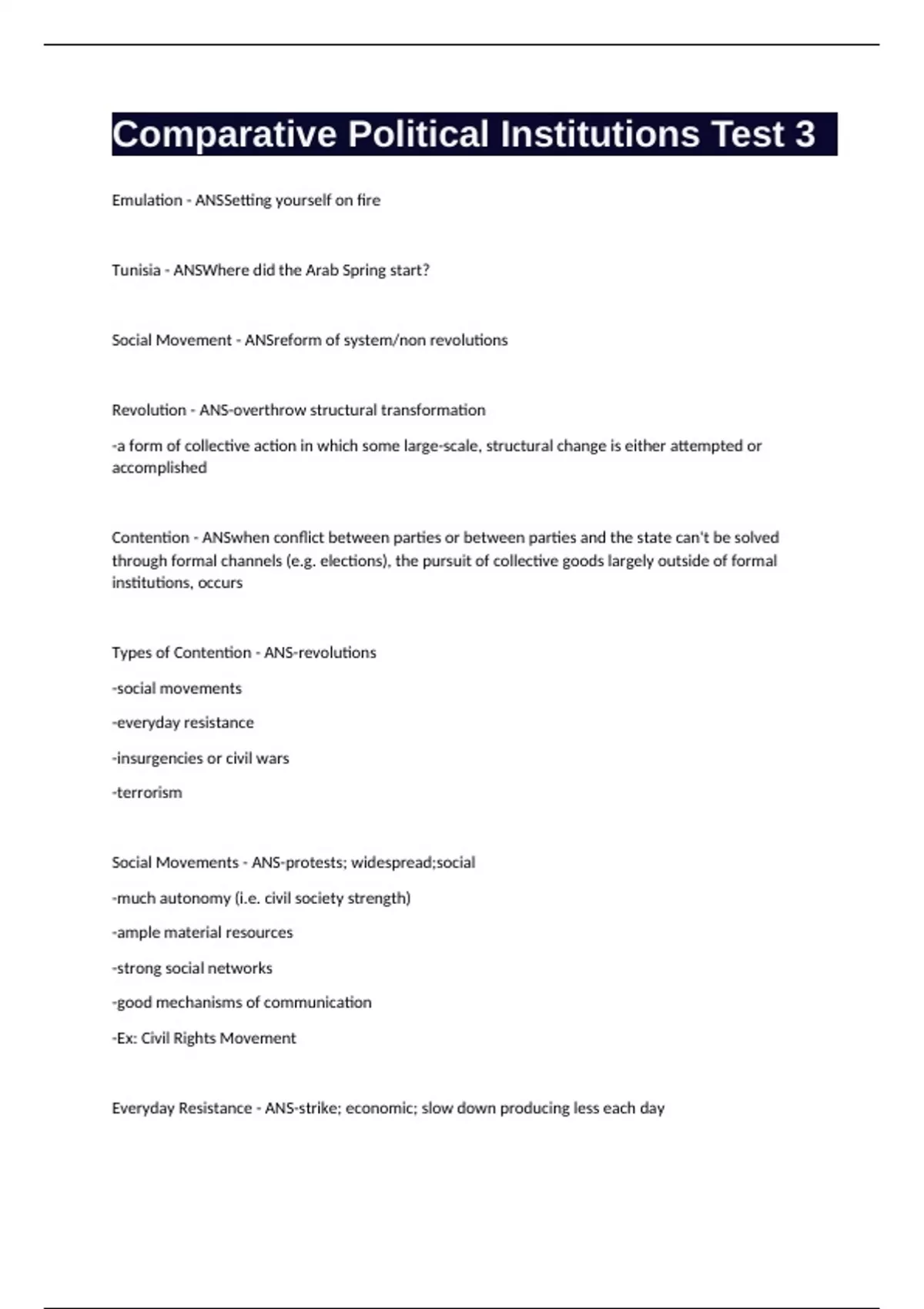Comparative Political Institutions Test 3