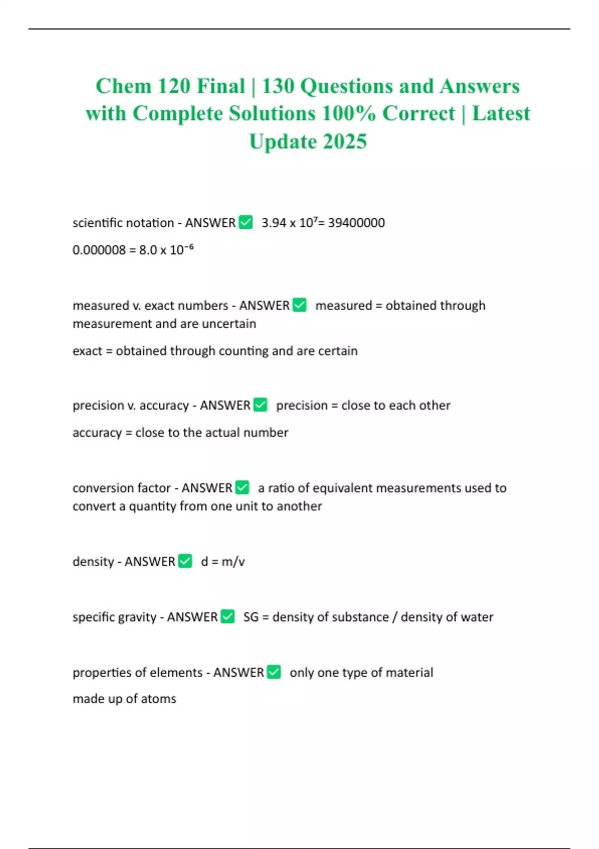 Chem 120 Final | 130 Questions and Answers