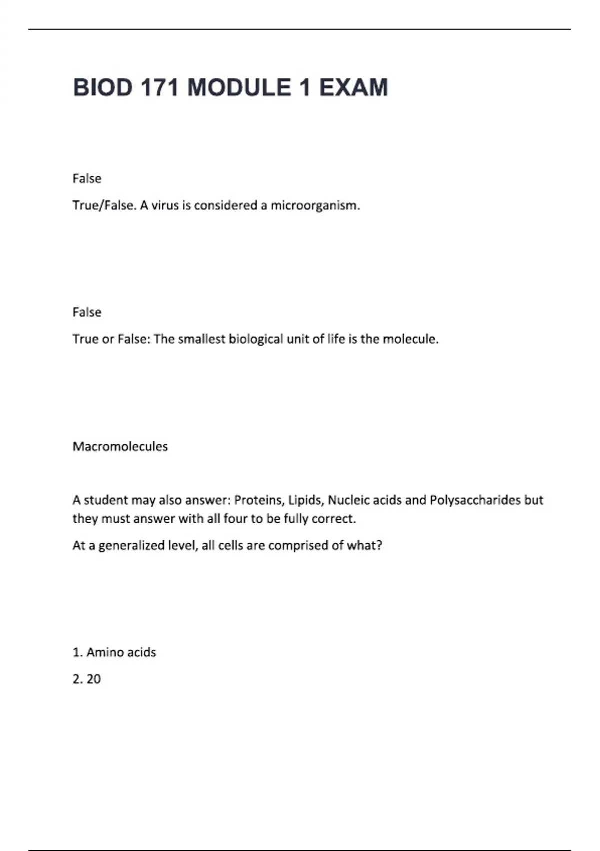 biod 171 module 1 exam questions and answers