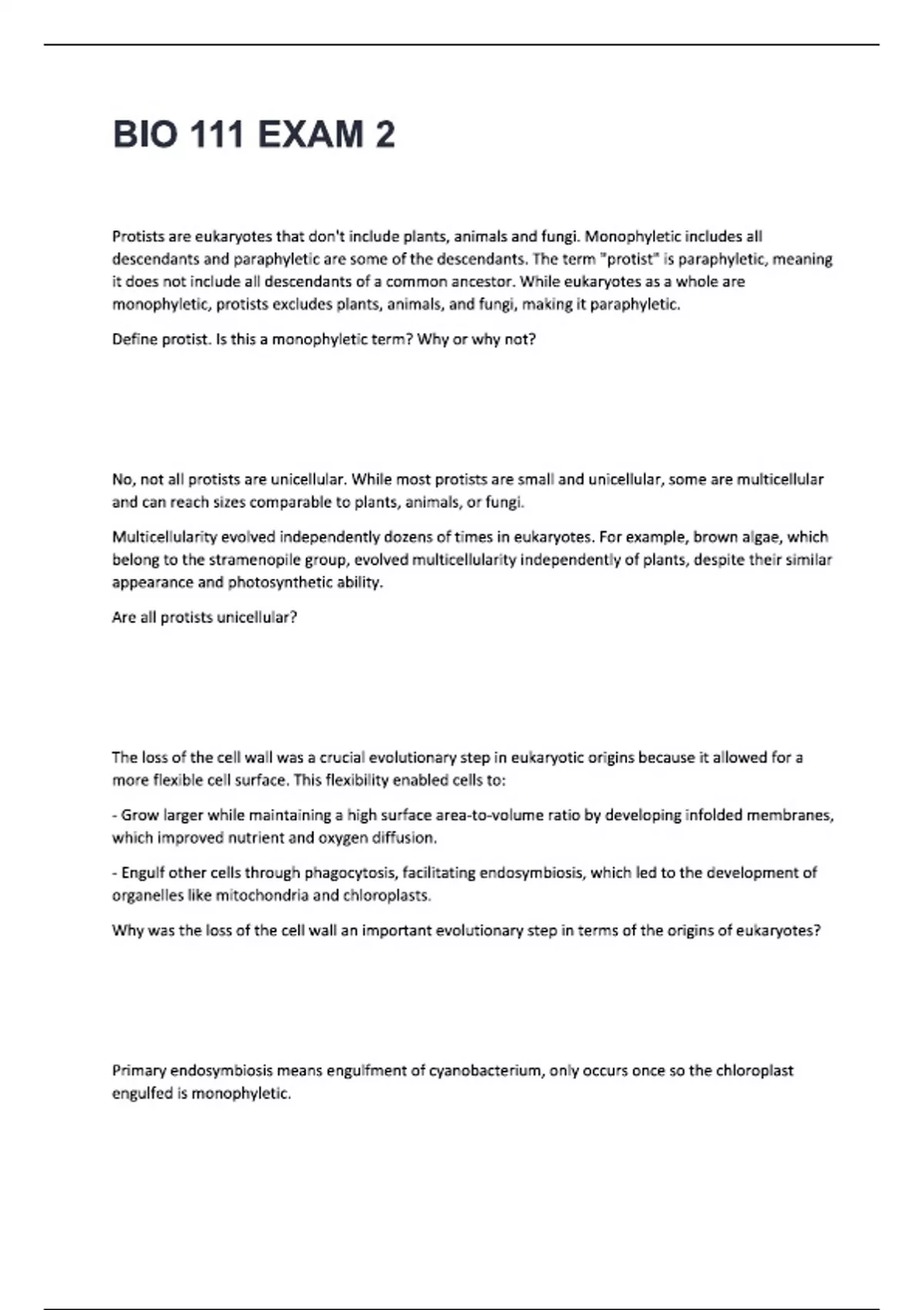 BIO 111 EXAM 2 QUESTIONS AND ANSWERS