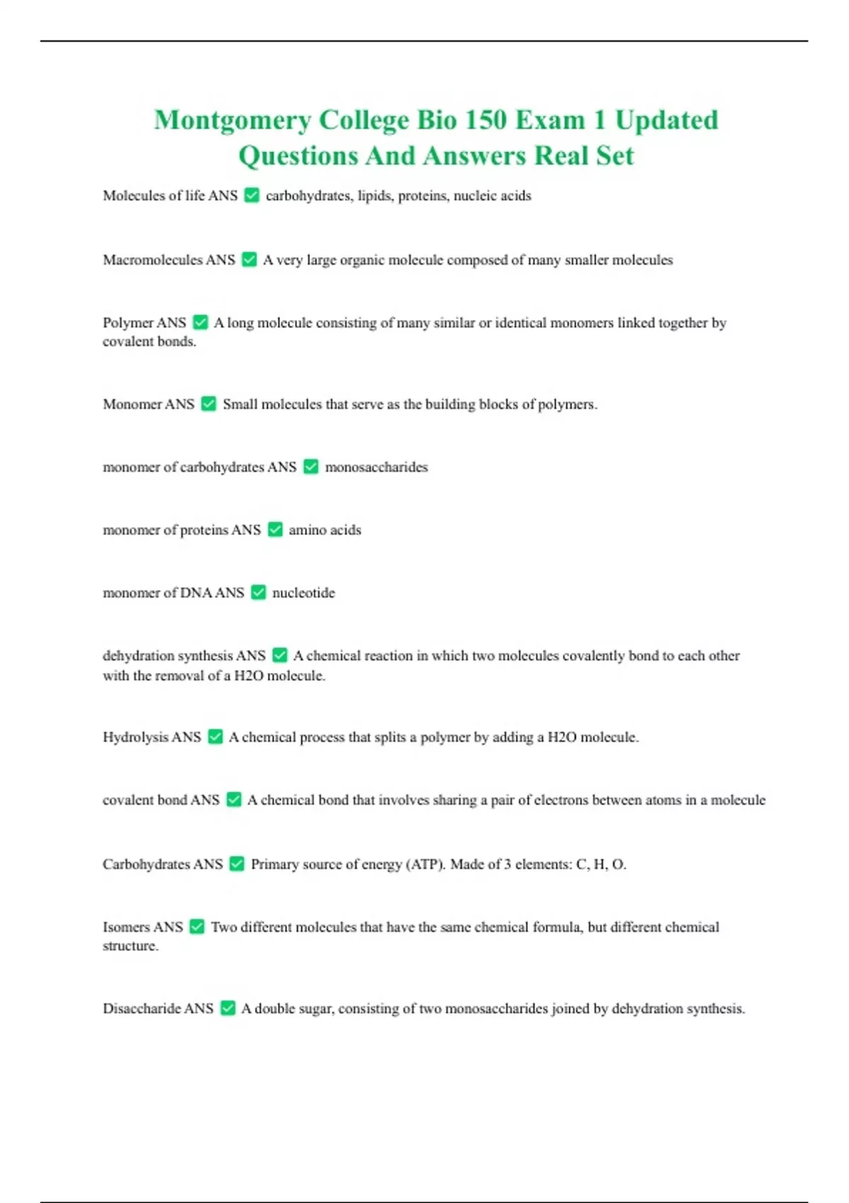 Monomer ANS Small molecules that serve as the building blocks of polymers.