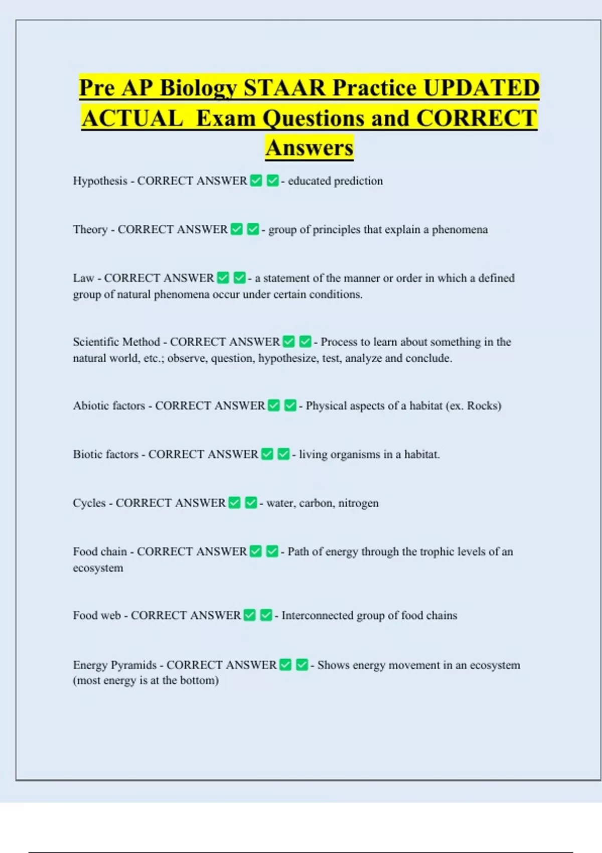 ACTUAL Exam Questions and CORRECT