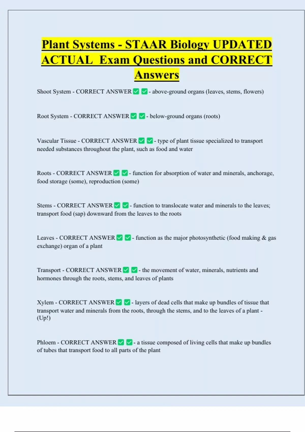 Stems - CORRECT ANSWER - function to translocate water and minerals to the leaves;