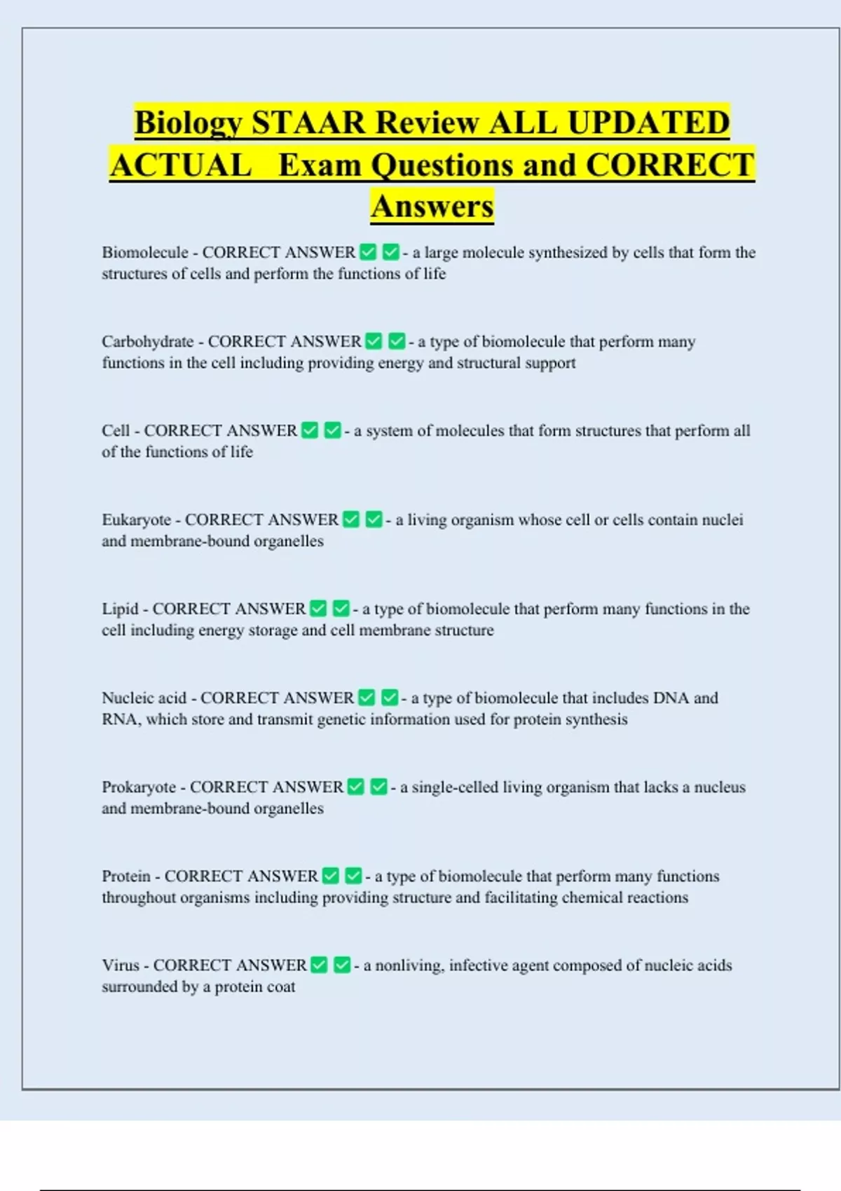Nucleic acid - CORRECT ANSWER - a type of biomolecule that includes DNA and
