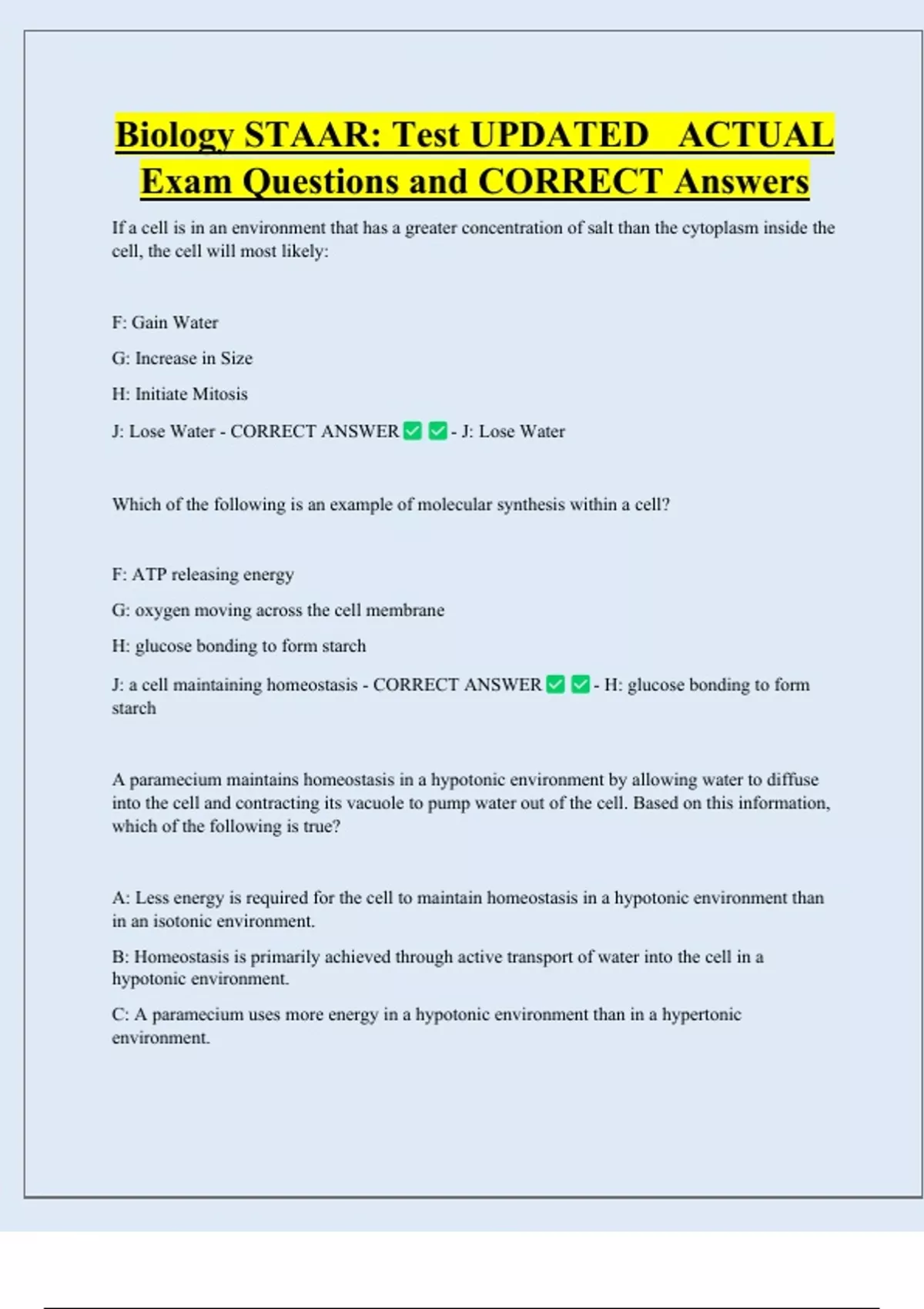 CORRECT ANSWER - C: A paramecium uses more energy in a hypotonic environment