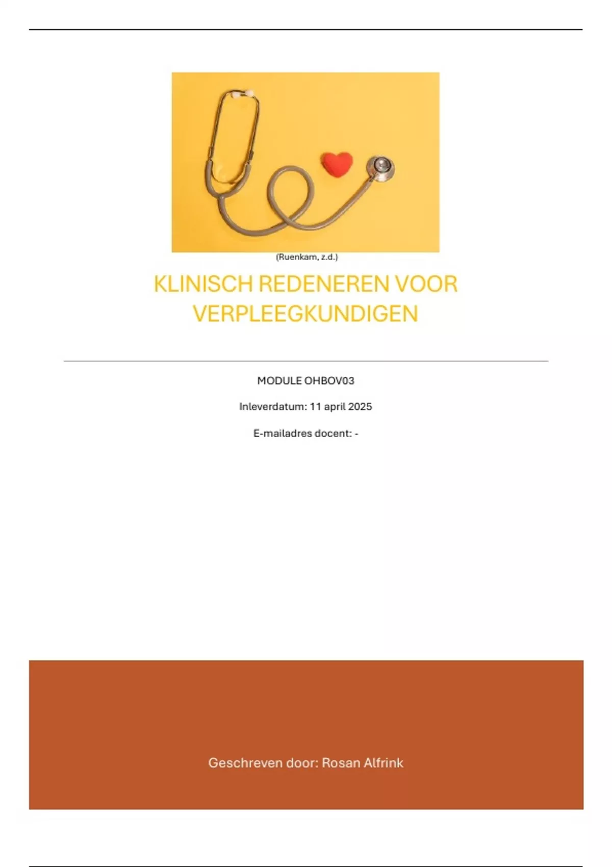 het beroepsproduct ‘klinisch redeneren voor verpleegkundigen’ heb ik een praktijkcasus gebruikt