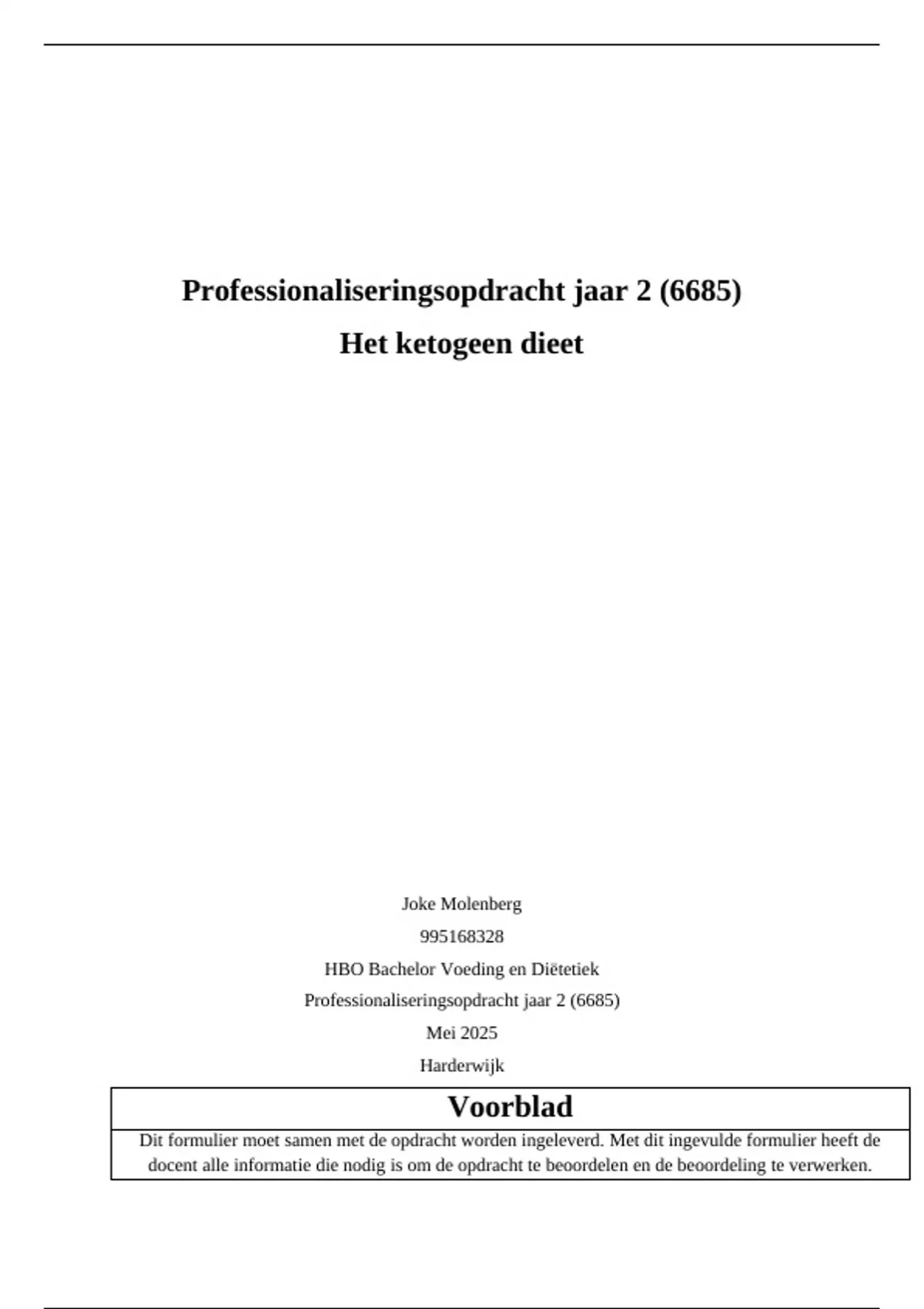 Ter inspiratie. Eindopdracht jaar 2, beoordeeld met een 9.4 Onderwerp is het ketogeen dieet