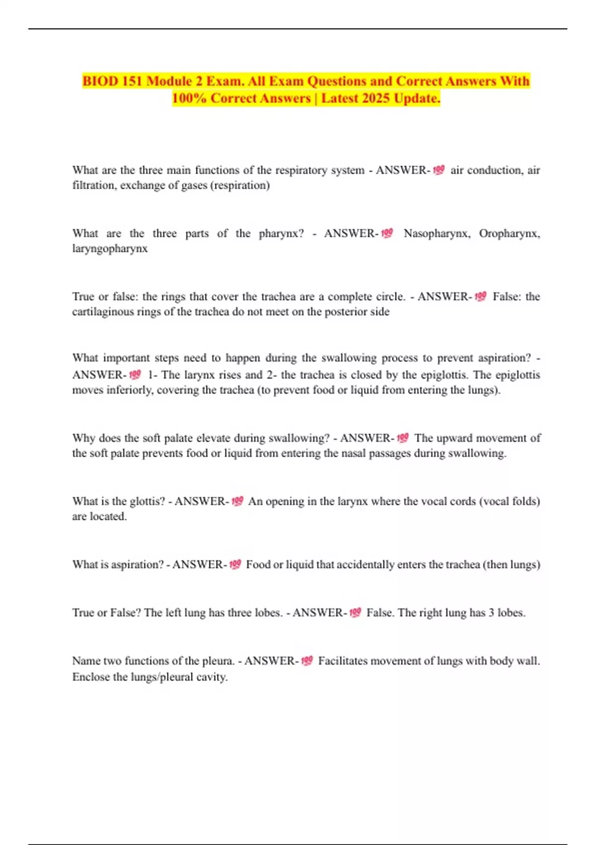 BIOD 151 Module 2 Exam. All Exam Questions and Correct Answers With