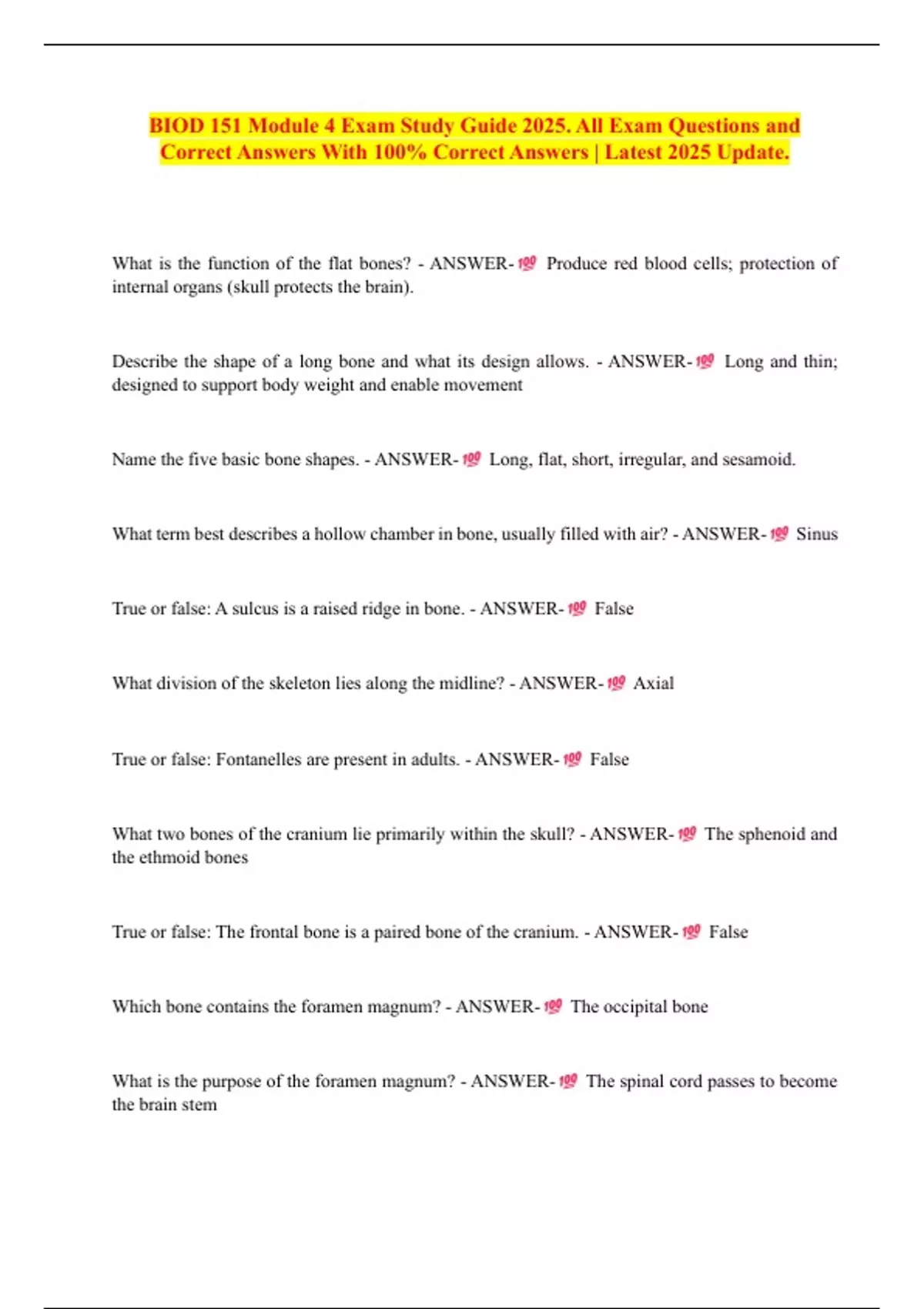 BIOD 151 Module 4 Exam Study Guide 2025. All Exam Questions and