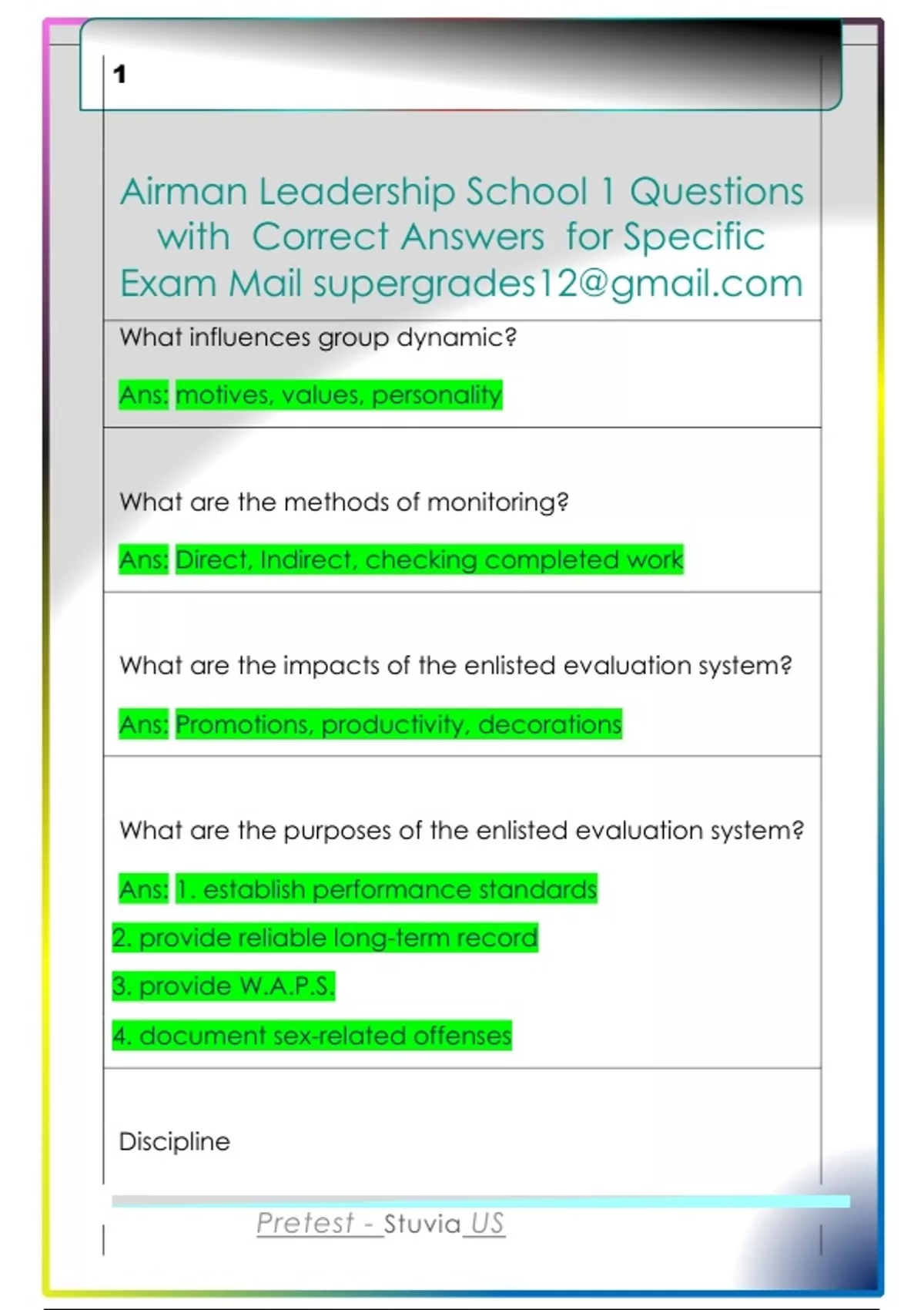 Airman Leadership School 1 Questions