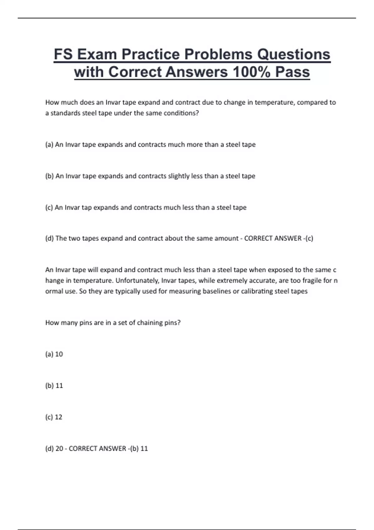 FS Exam Practice Problems Questions with Correct Answers 100 Pass