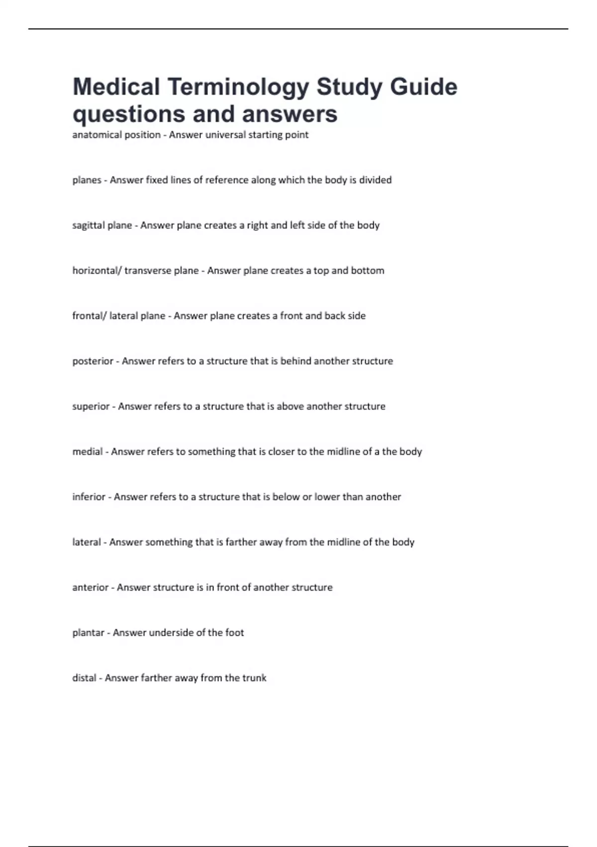 horizontal/ transverse plane - Answer plane creates a top and bottom