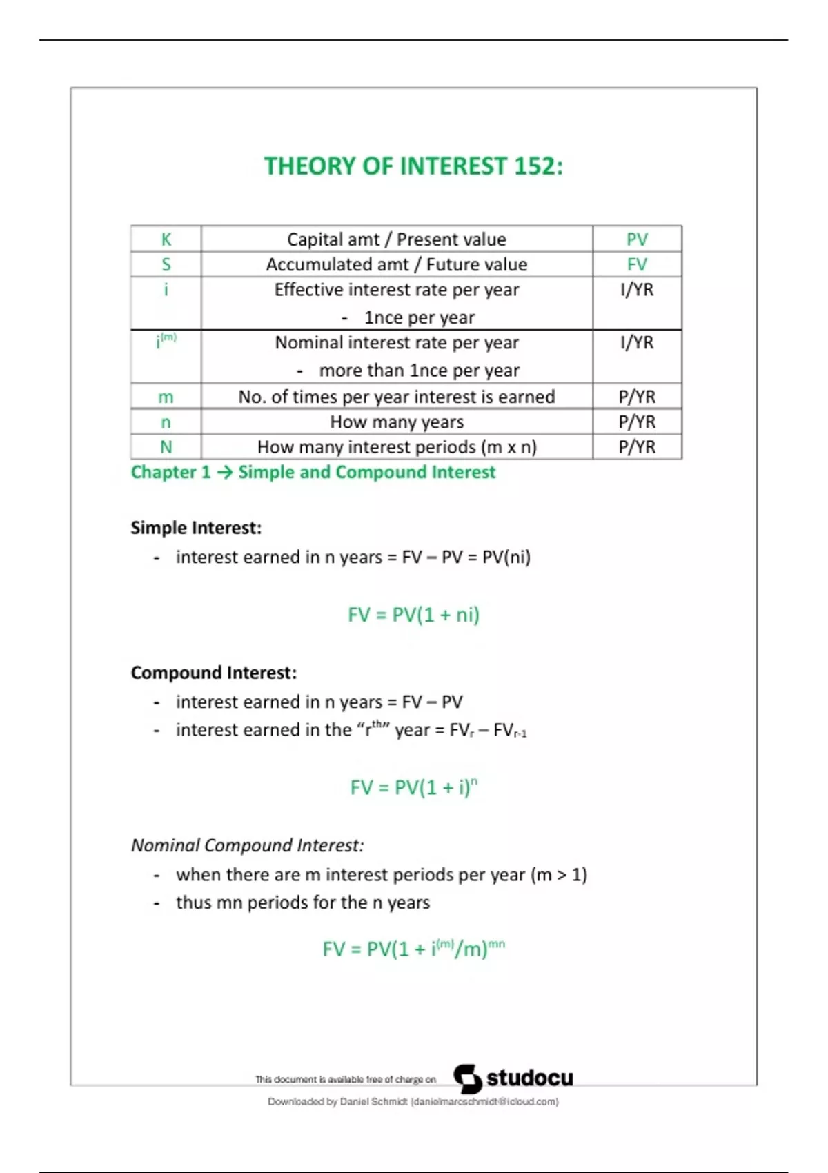 Theory of Interest (TOI 152) Notes FULL SEMESTER