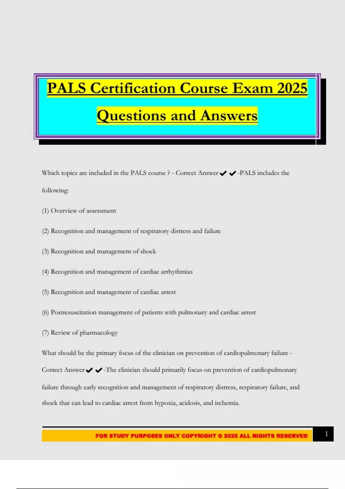 FOR STUDY PURPOSES ONLY COPYRIGHT © 2025 ALL RIGHTS RESERVED 1