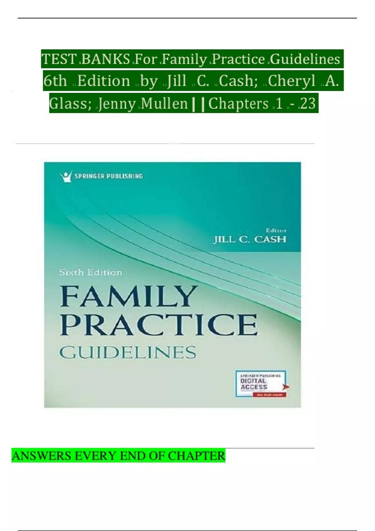 Test bank for Family Practice Guidelines – Test Bank for Family Practice Guidelines (6th Edition, Cash, Glass, Mullen) – Complete Clinical Review and Exam Prep Material
