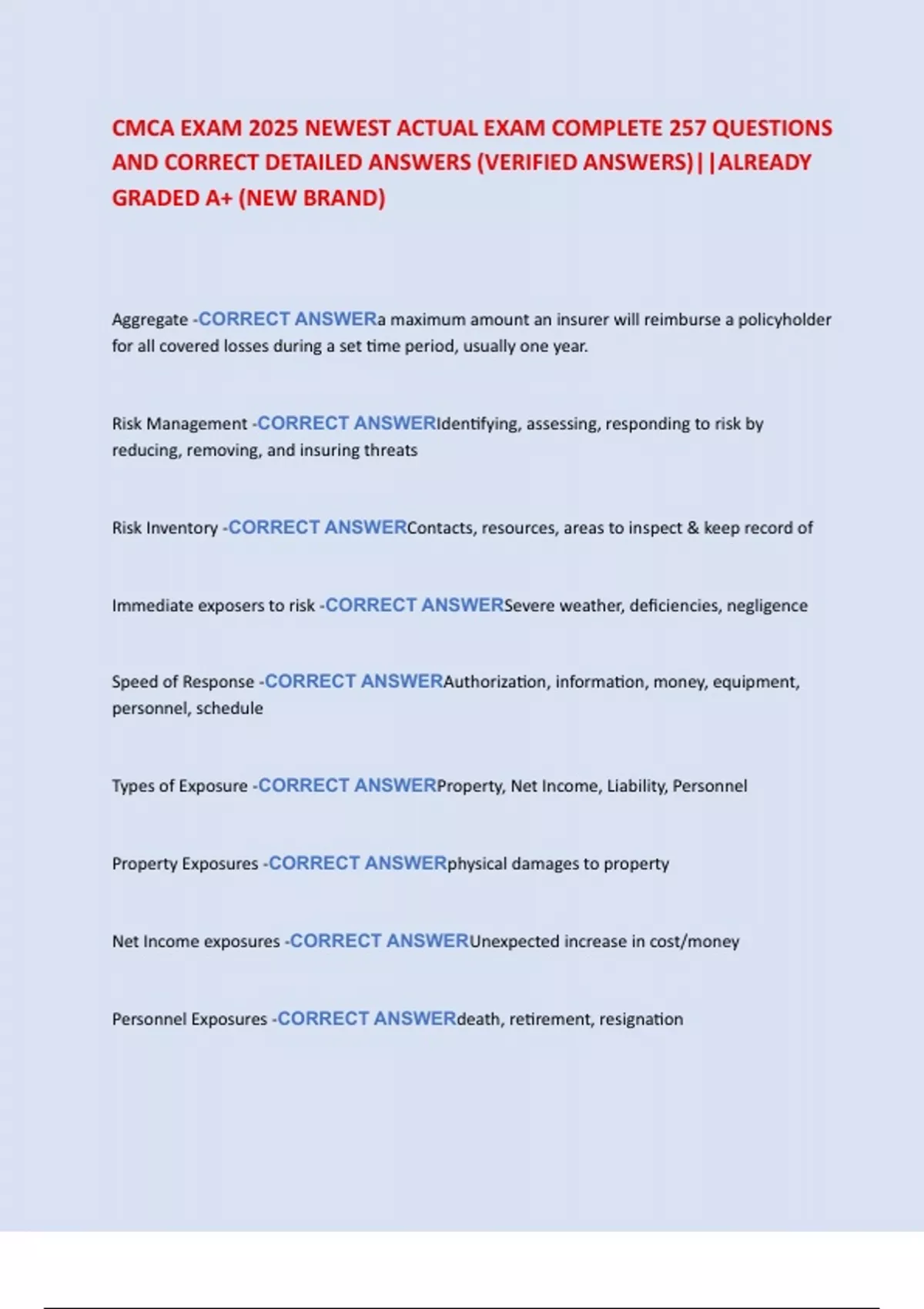 CMCA EXAM 2025 NEWEST ACTUAL EXAM COMPLETE 257 QUESTIONS