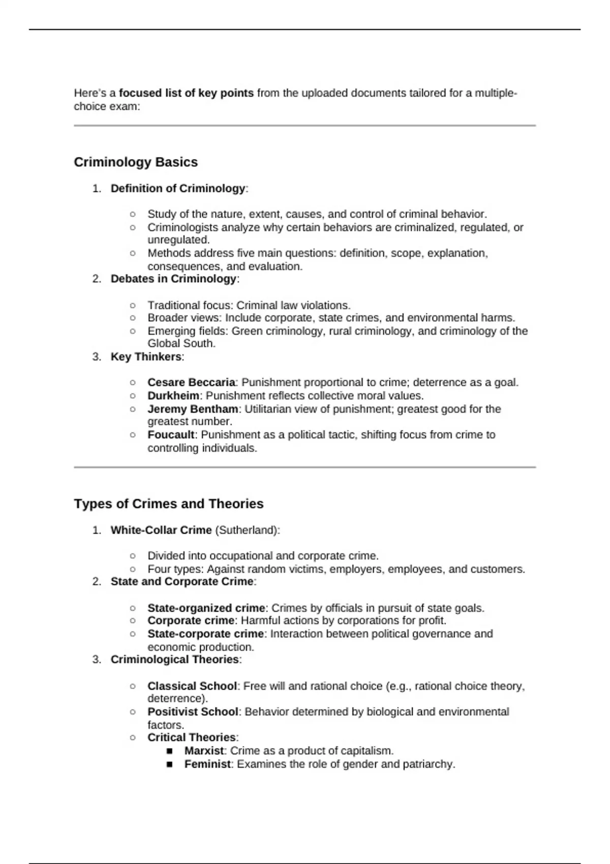 Extensive summary for 2nd year GLB students doing criminology and criminal justice. This document has information on all tutorials.