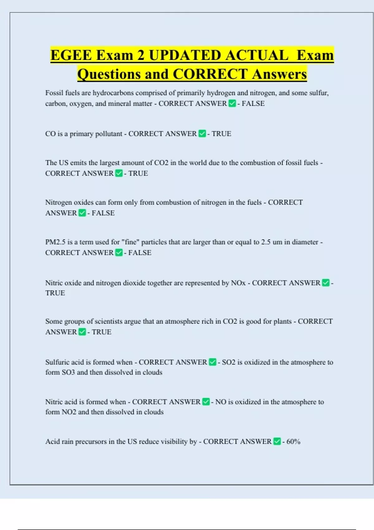 Acid rain precursors in the US reduce visibility by - CORRECT ANSWER - 60%