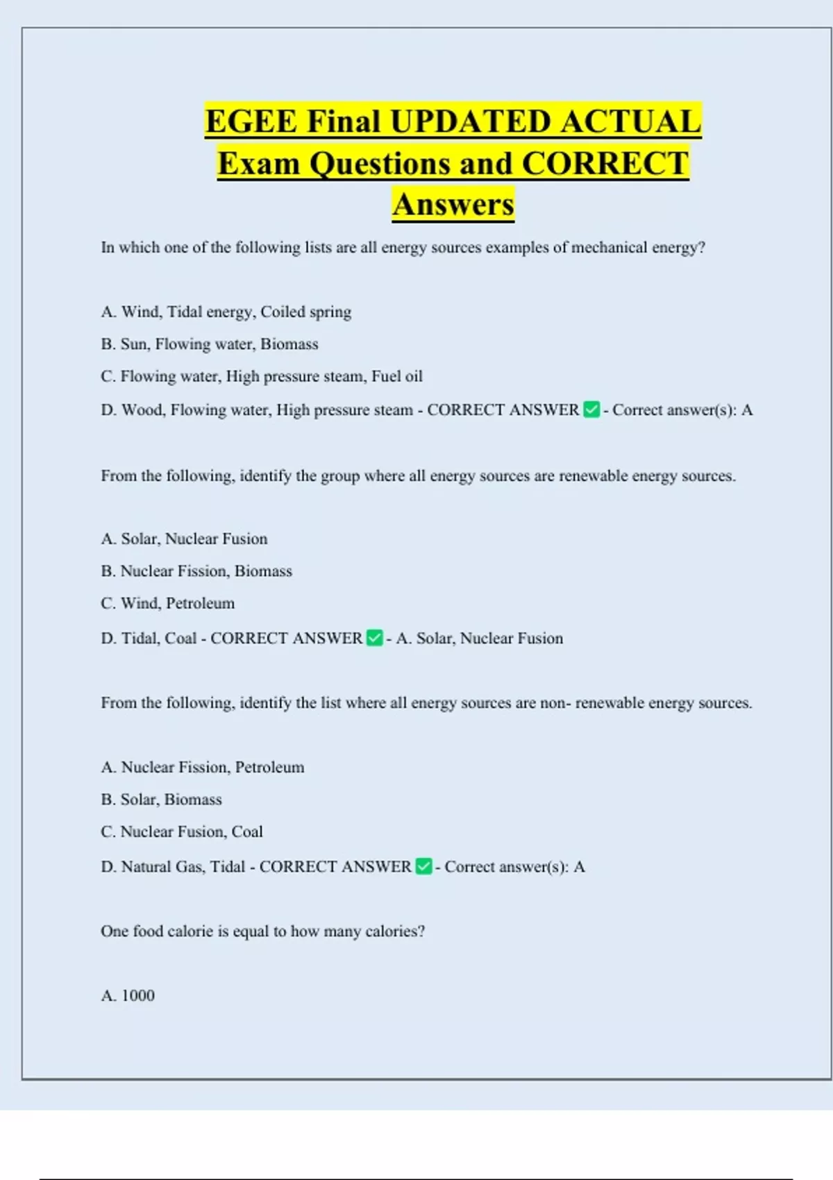 D. Natural Gas, Tidal - CORRECT ANSWER - Correct answer(s): A