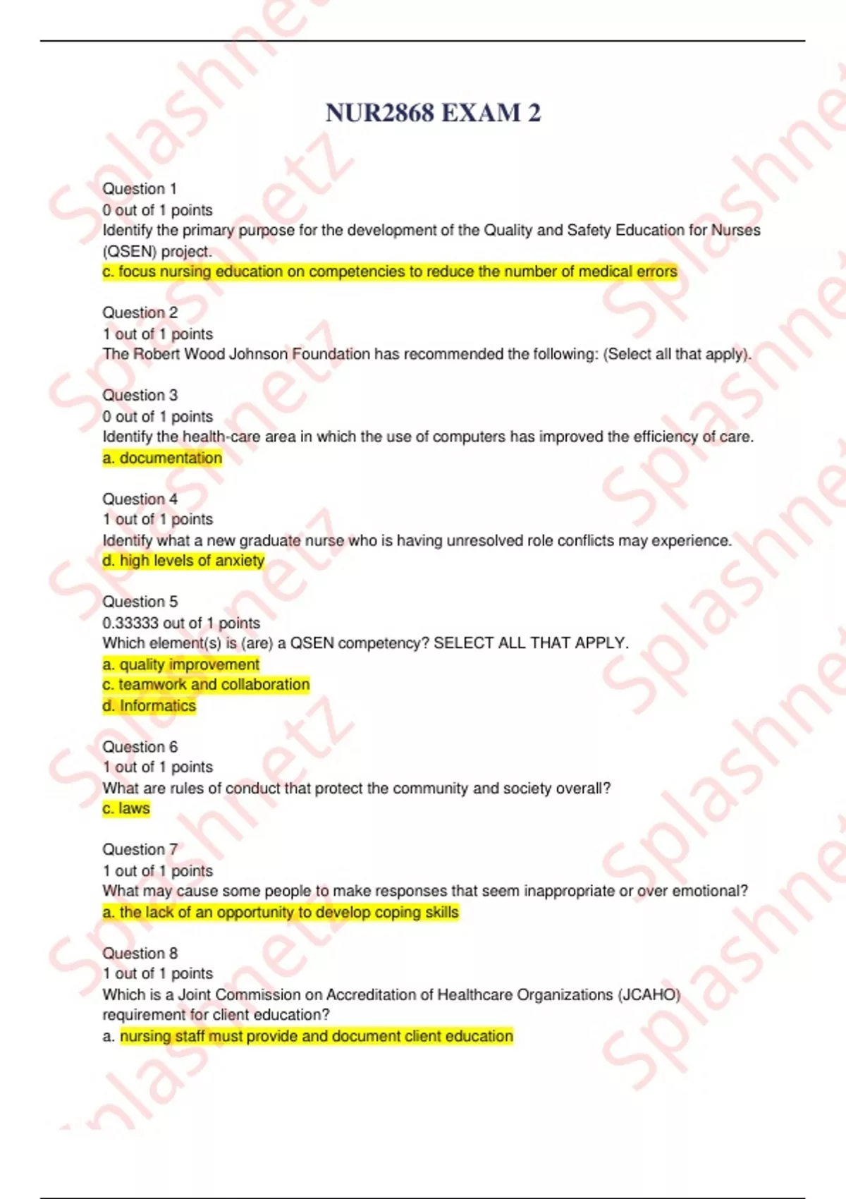 NUR2868 EXAM 2 Questions And Correct Answers