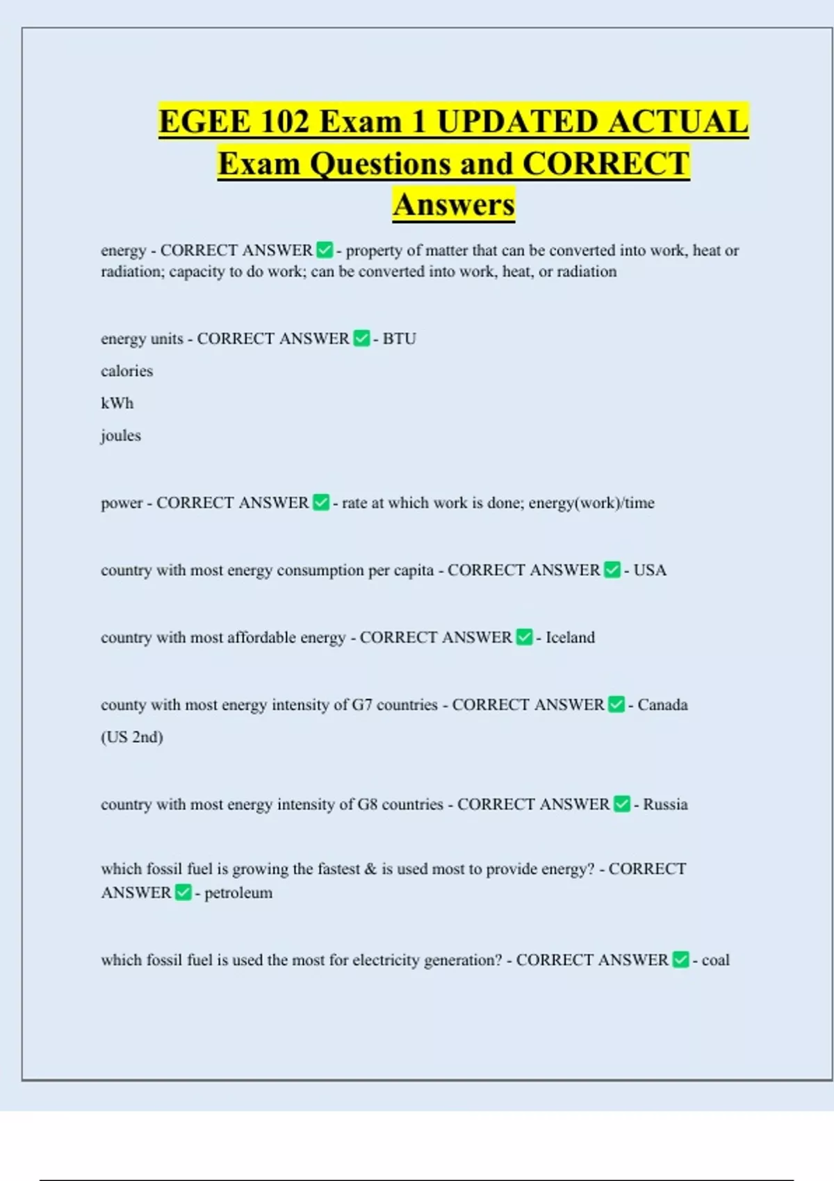 Exam Questions and CORRECT