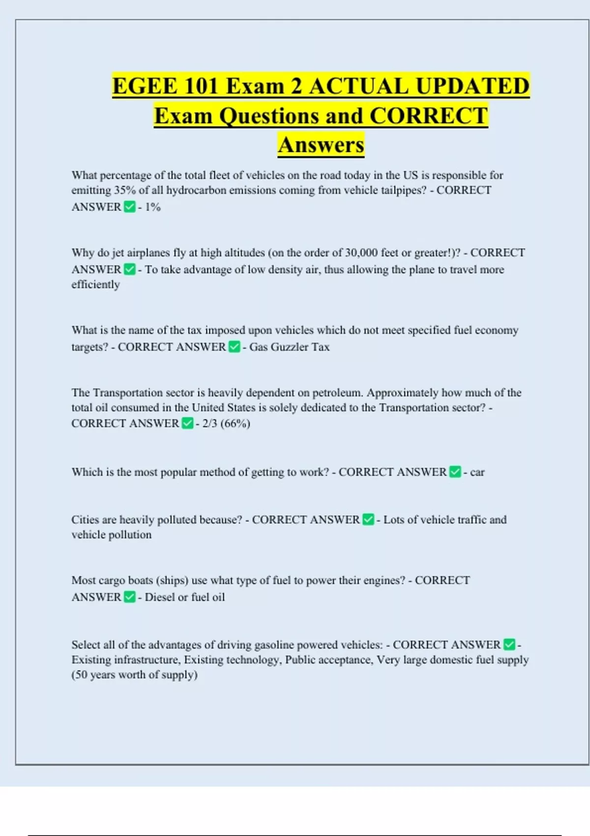 Exam Questions and CORRECT