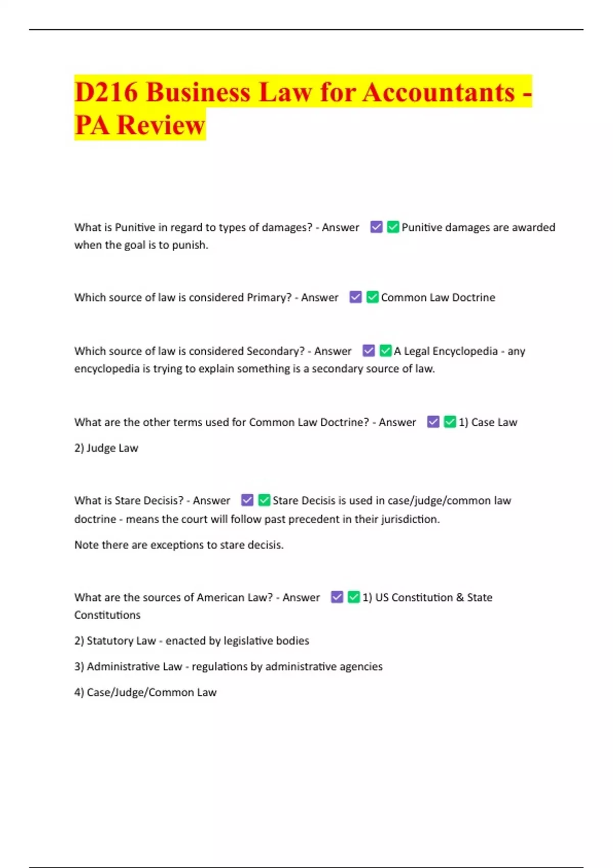 D216 Business Law for Accountants - PA Review