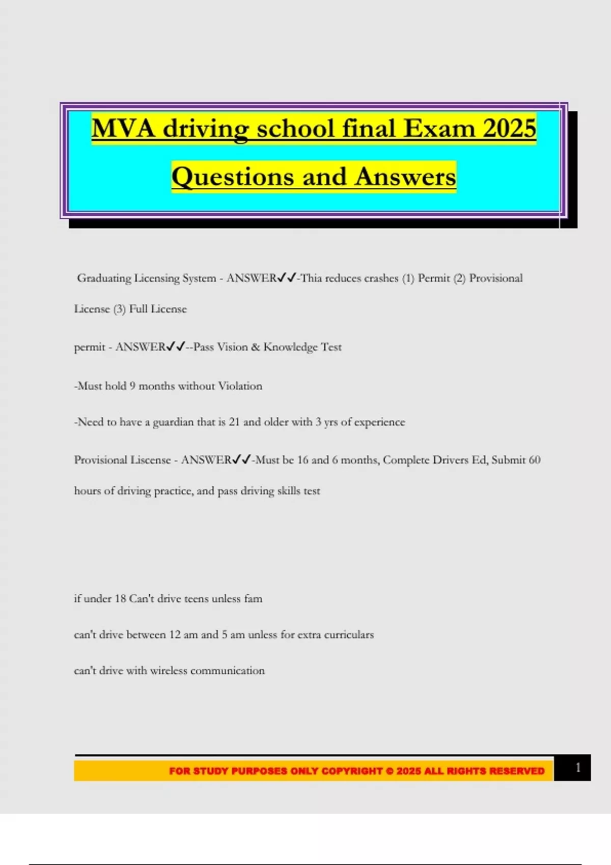 FOR STUDY PURPOSES ONLY COPYRIGHT © 2025 ALL RIGHTS RESERVED 1