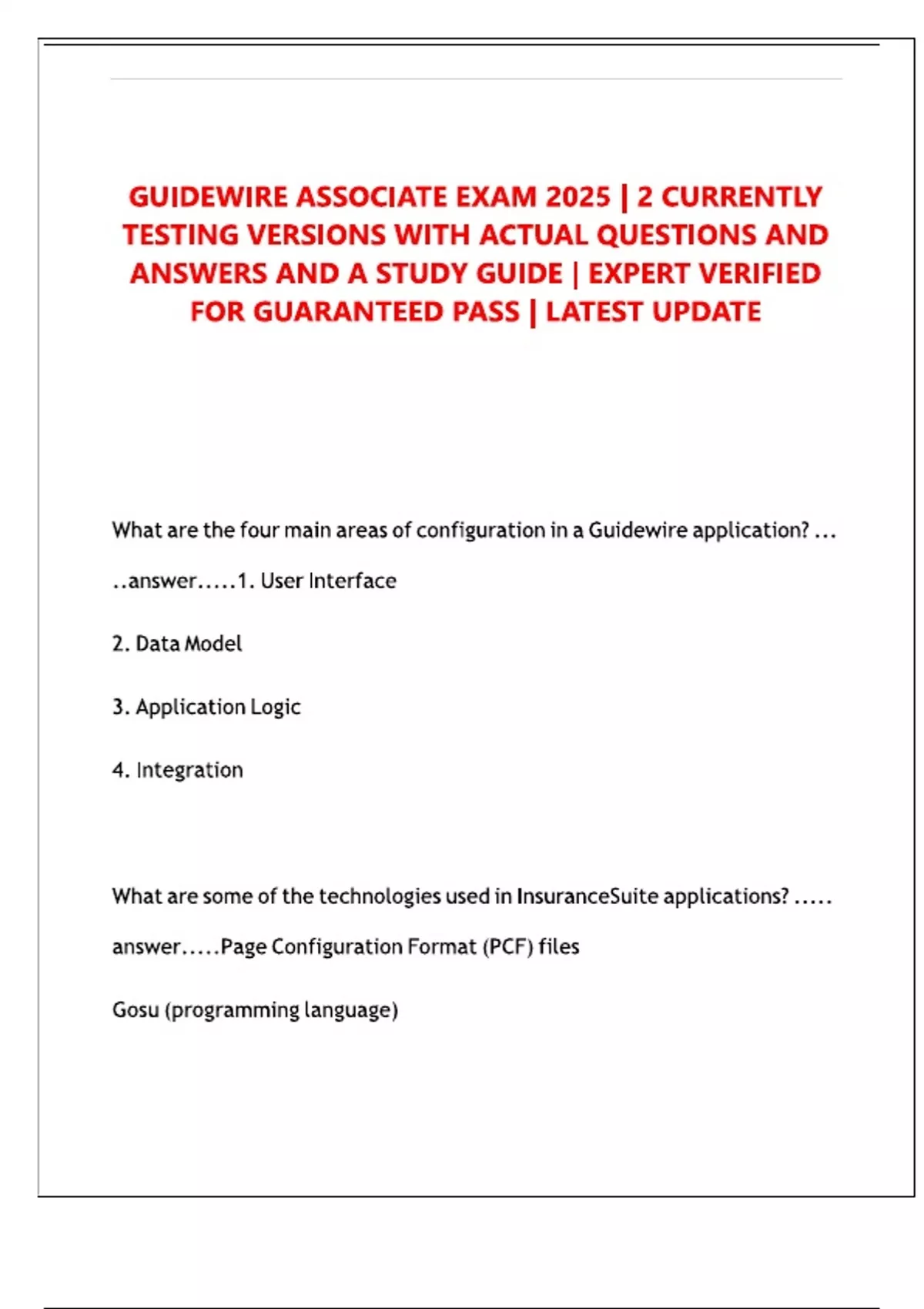 GUIDEWIRE ASSOCIATE EXAM 2025