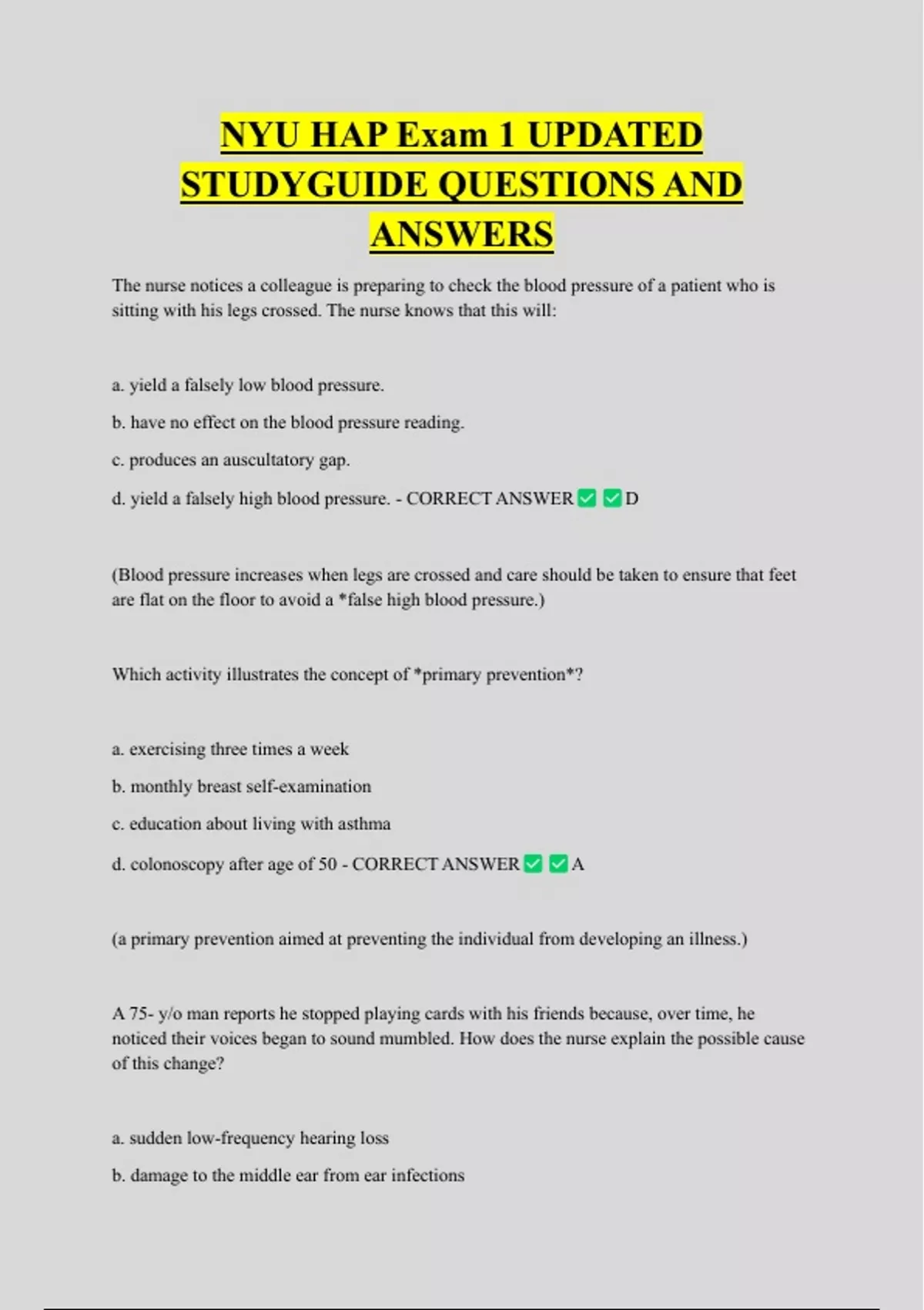 d. colonoscopy after age of 50 - CORRECT ANSWER A