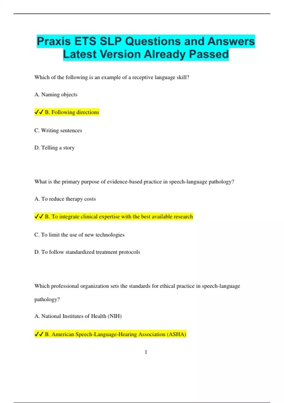 Praxis ETS SLP Questions and Answers Latest Version Already Passed