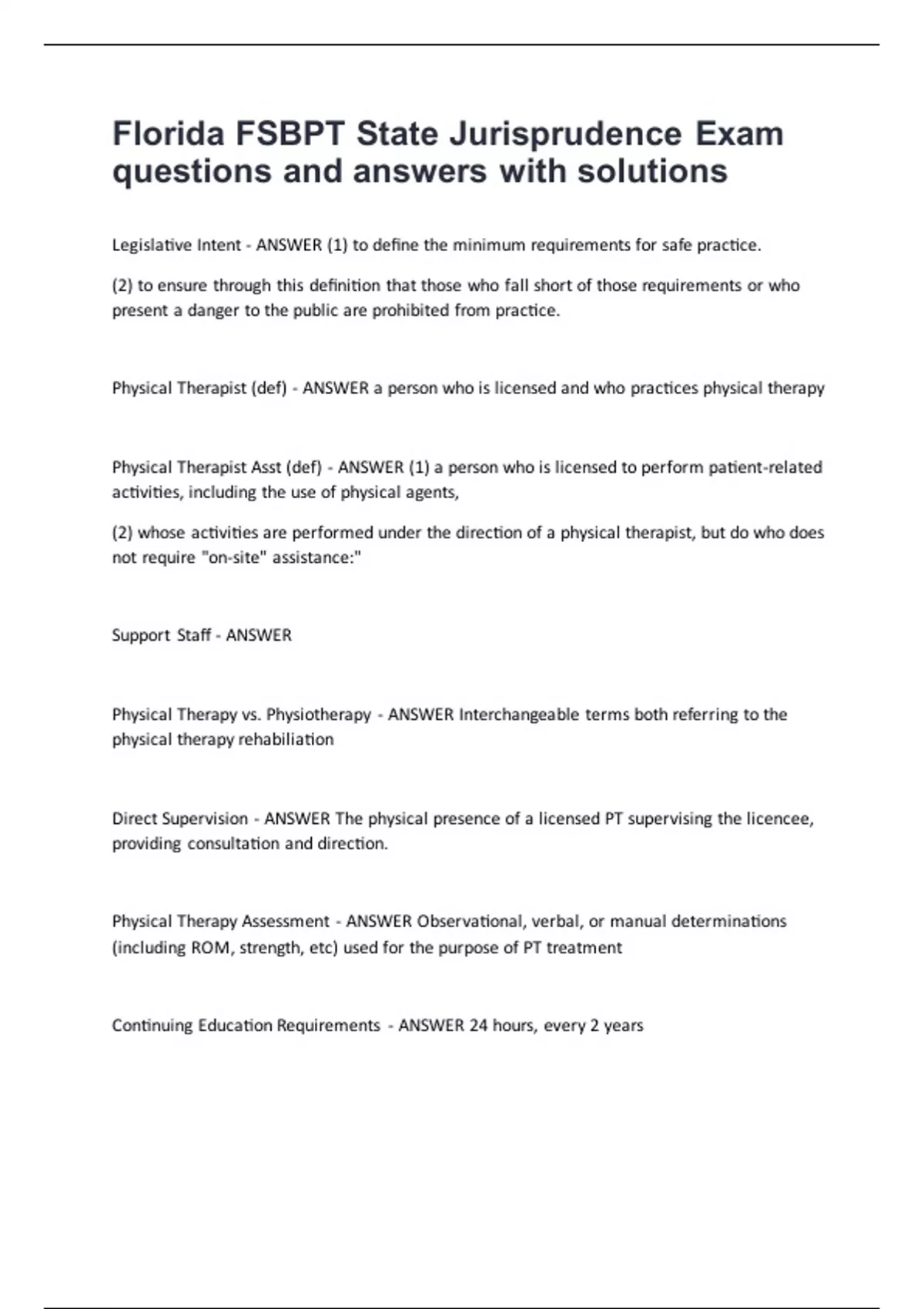 Physical Therapist (def) - ANSWER a person who is licensed and who practices physical therapy