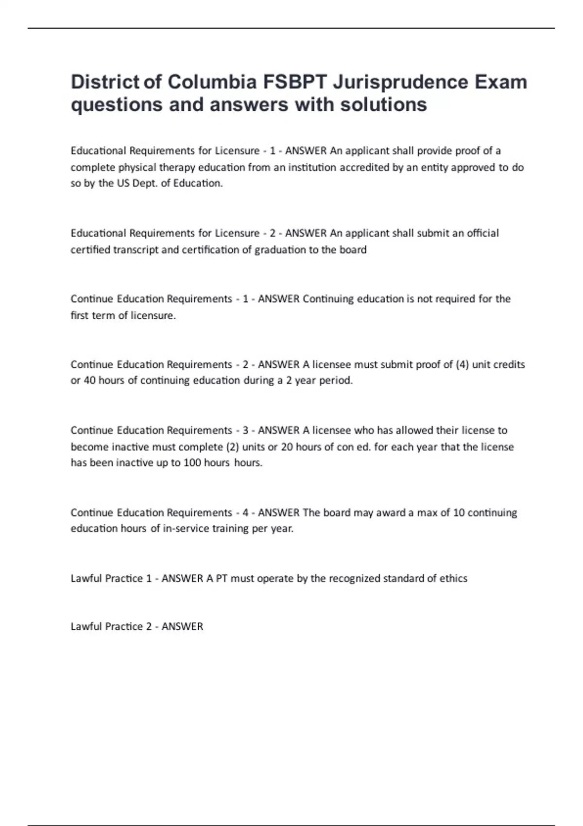 Lawful Practice 1 - ANSWER A PT must operate by the recognized standard of ethics