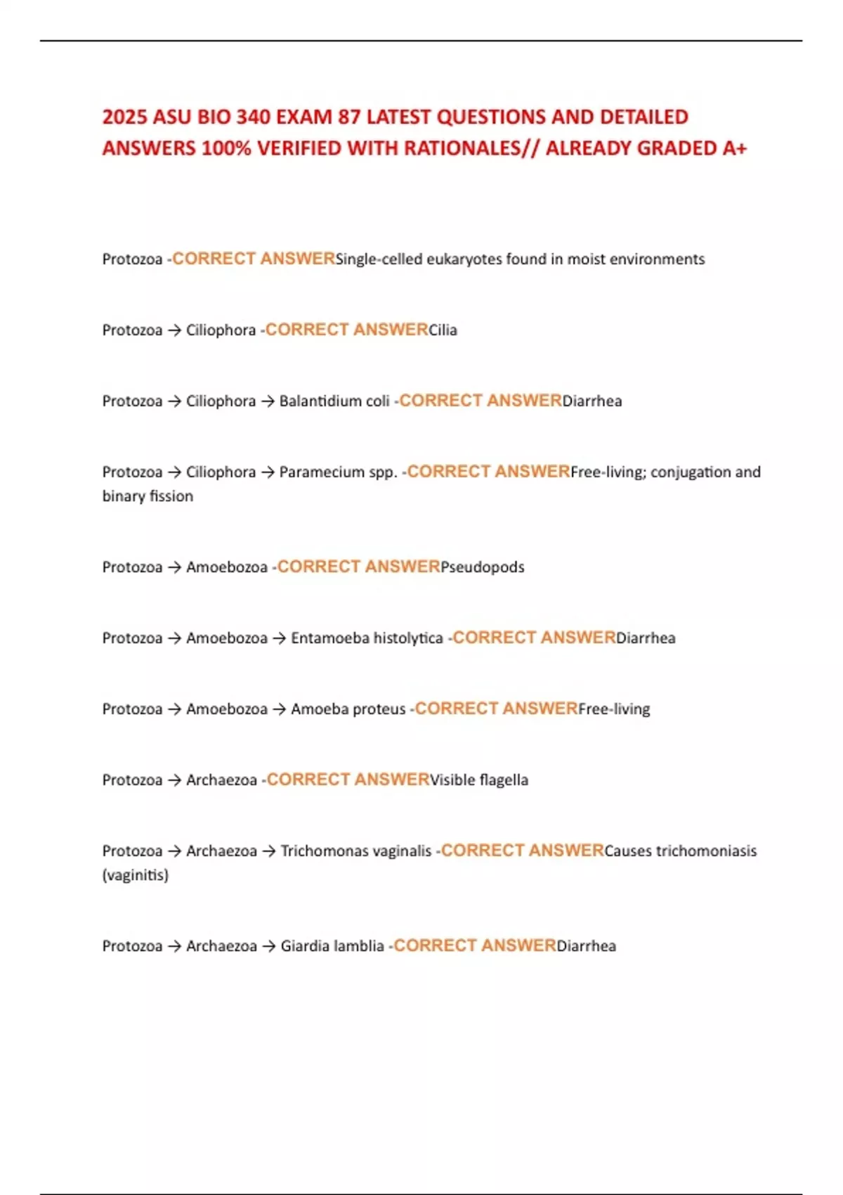 2025 ASU BIO 340 EXAM 87 LATEST QUESTIONS AND DETAILED