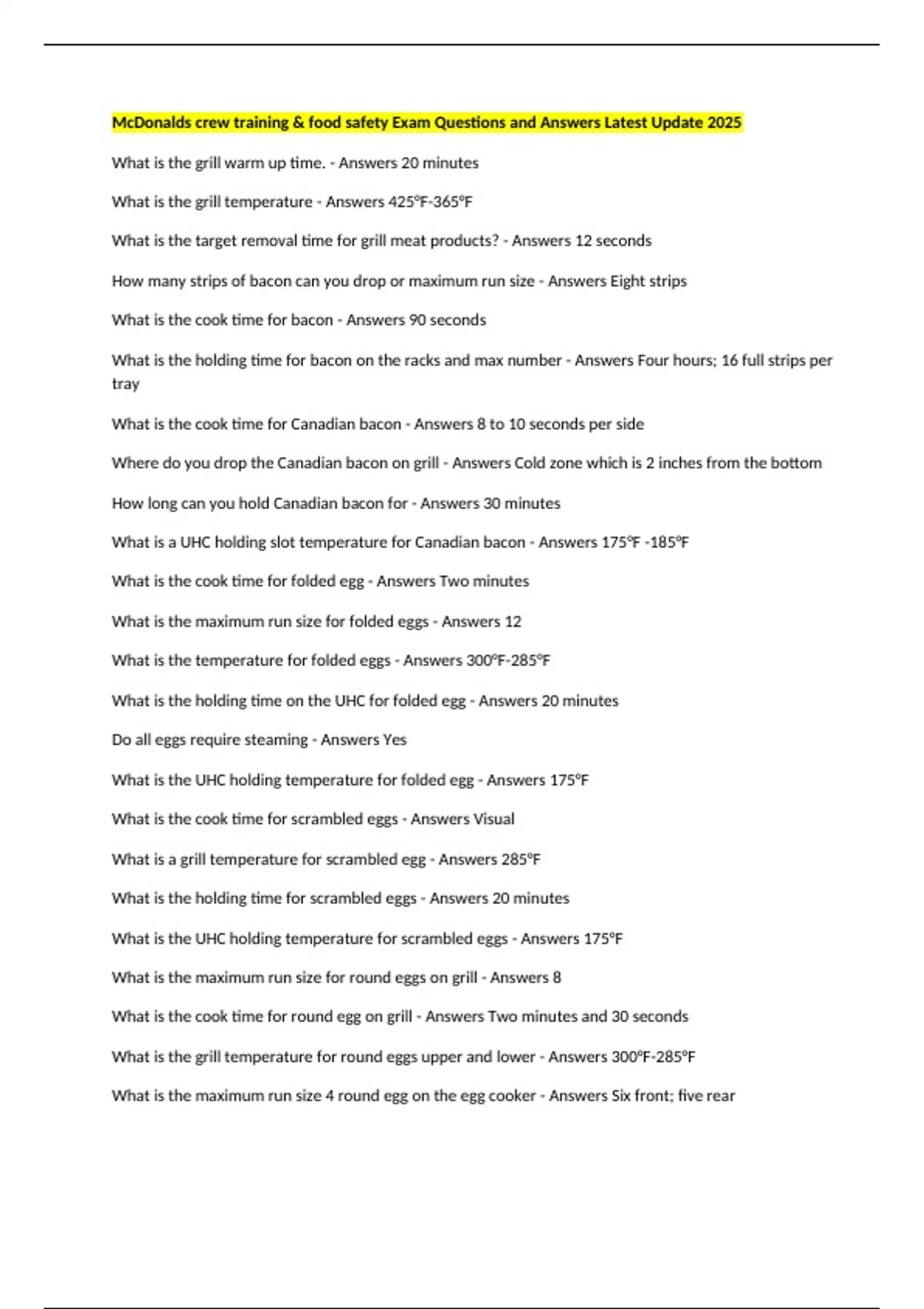 What is the hold time for McGriddle and UHC slot temperature - Answers 20 minutes and 175°F