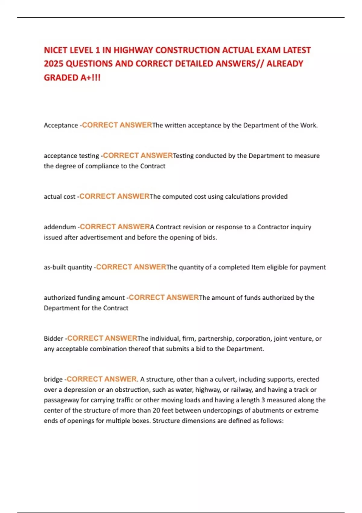 NICET LEVEL 1 IN HIGHWAY CONSTRUCTION ACTUAL EXAM LATEST