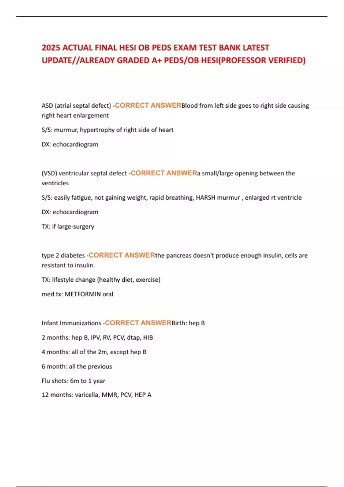 UPDATE//ALREADY GRADED A+ PEDS/OB HESI(PROFESSOR VERIFIED)