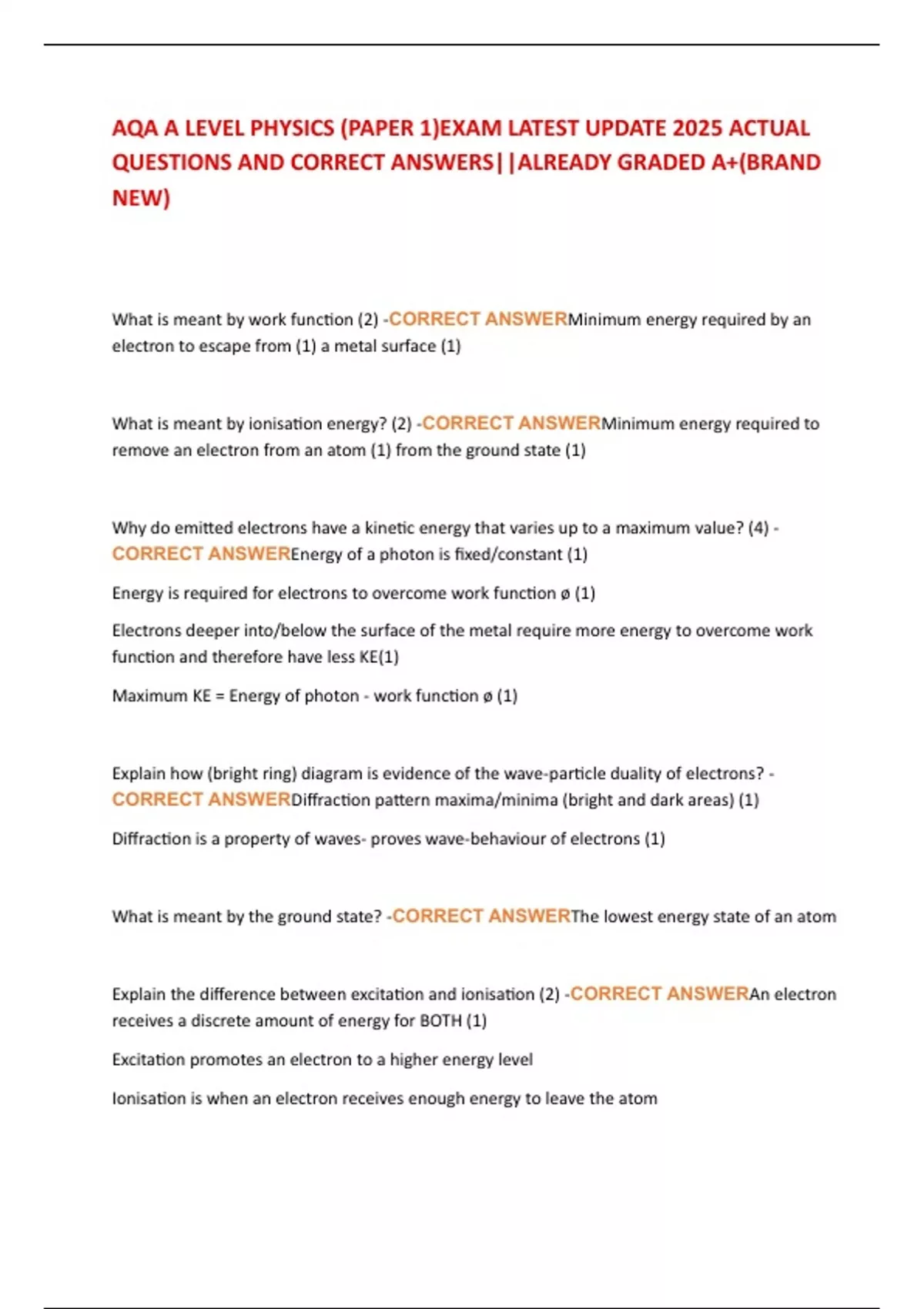 AQA A LEVEL PHYSICS (PAPER 1)EXAM LATEST UPDATE 2025 ACTUAL