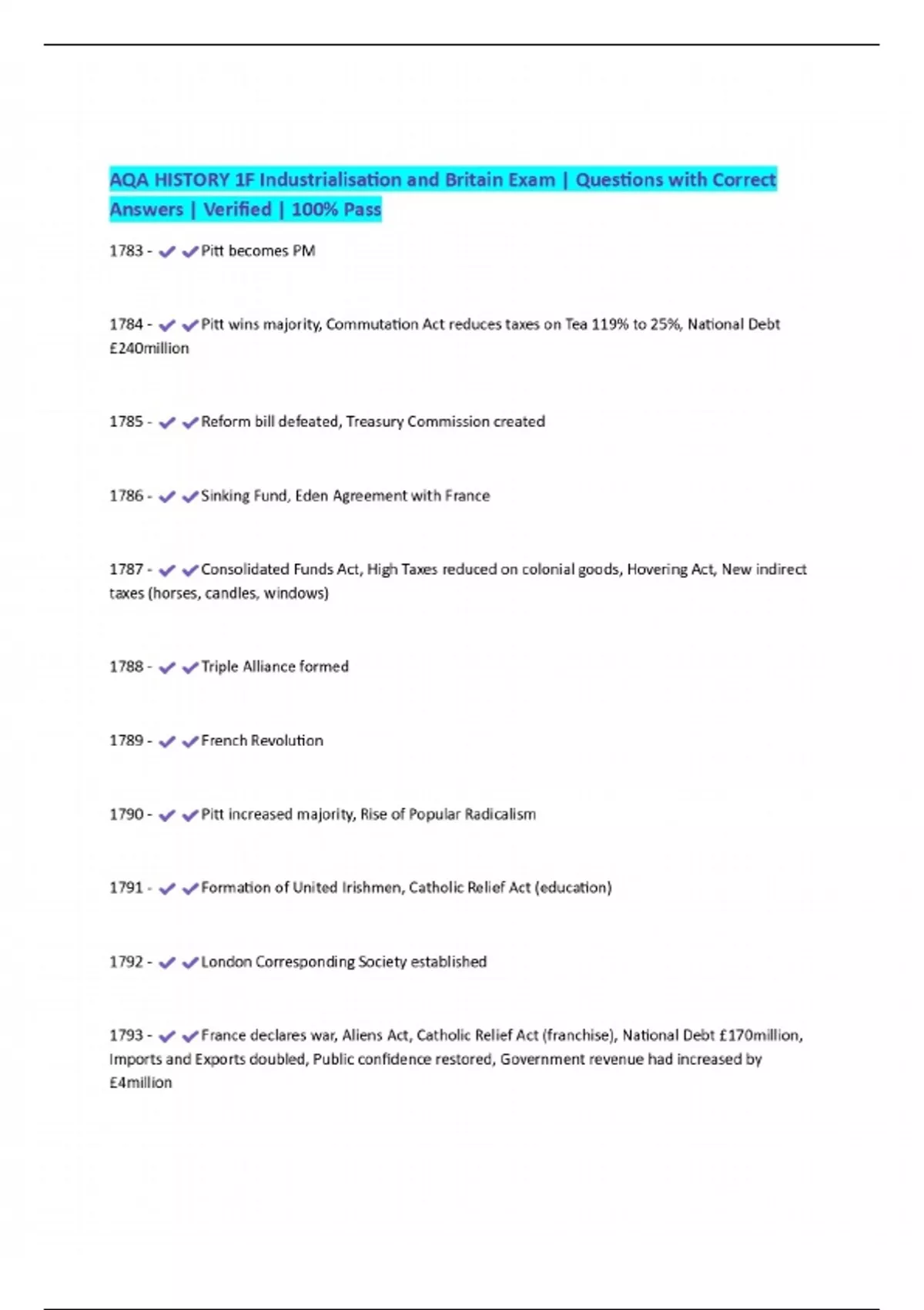 AQA HISTORY 1F Industrialisation and Britain Exam | Questions with Correct Answers | Verified | 100% Pass