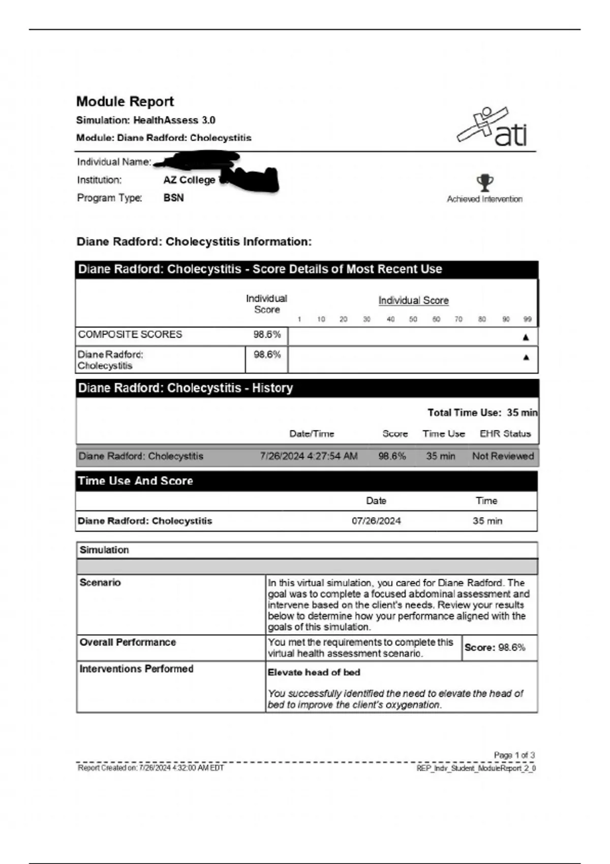 ATI Health Assess 3.0 Module: Diane Radford: Cholecystitis | 2025 with complete solutions.