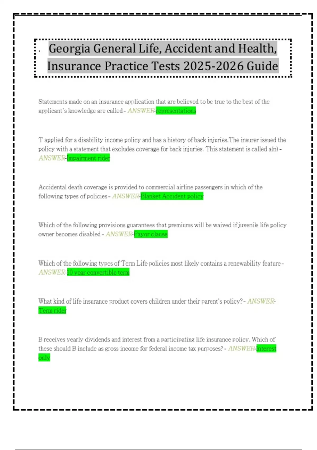 Georgia General Life, Accident and Health, Insurance Practice Tests Guide