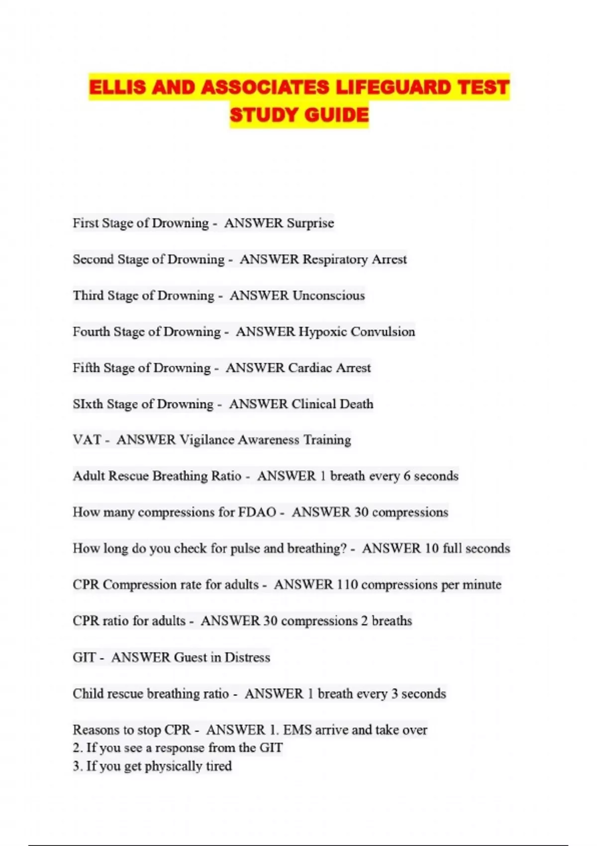 ELLIS AND ASSOCIATES LIFEGUARD TEST STUDY GUIDE